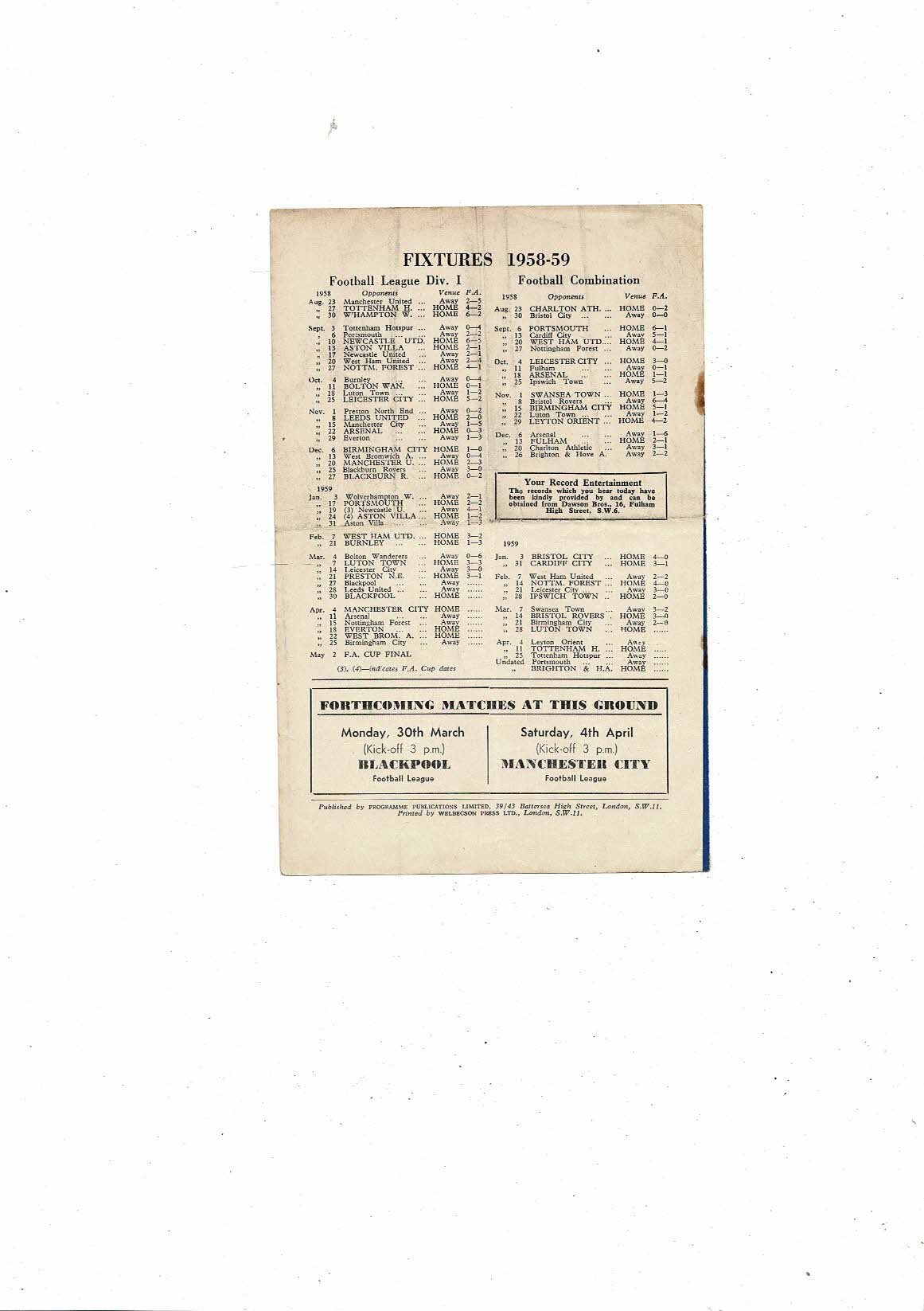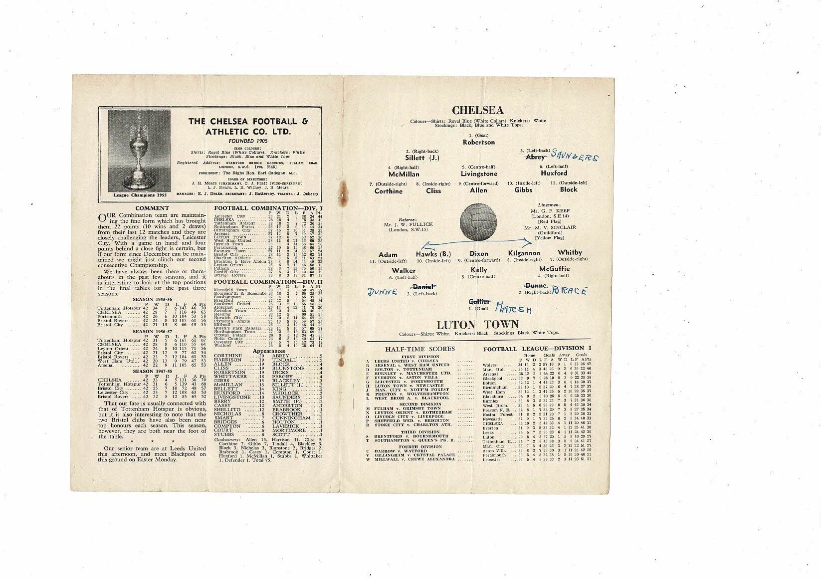 Chelsea v Luton Town Football Combination Programme 1958/59