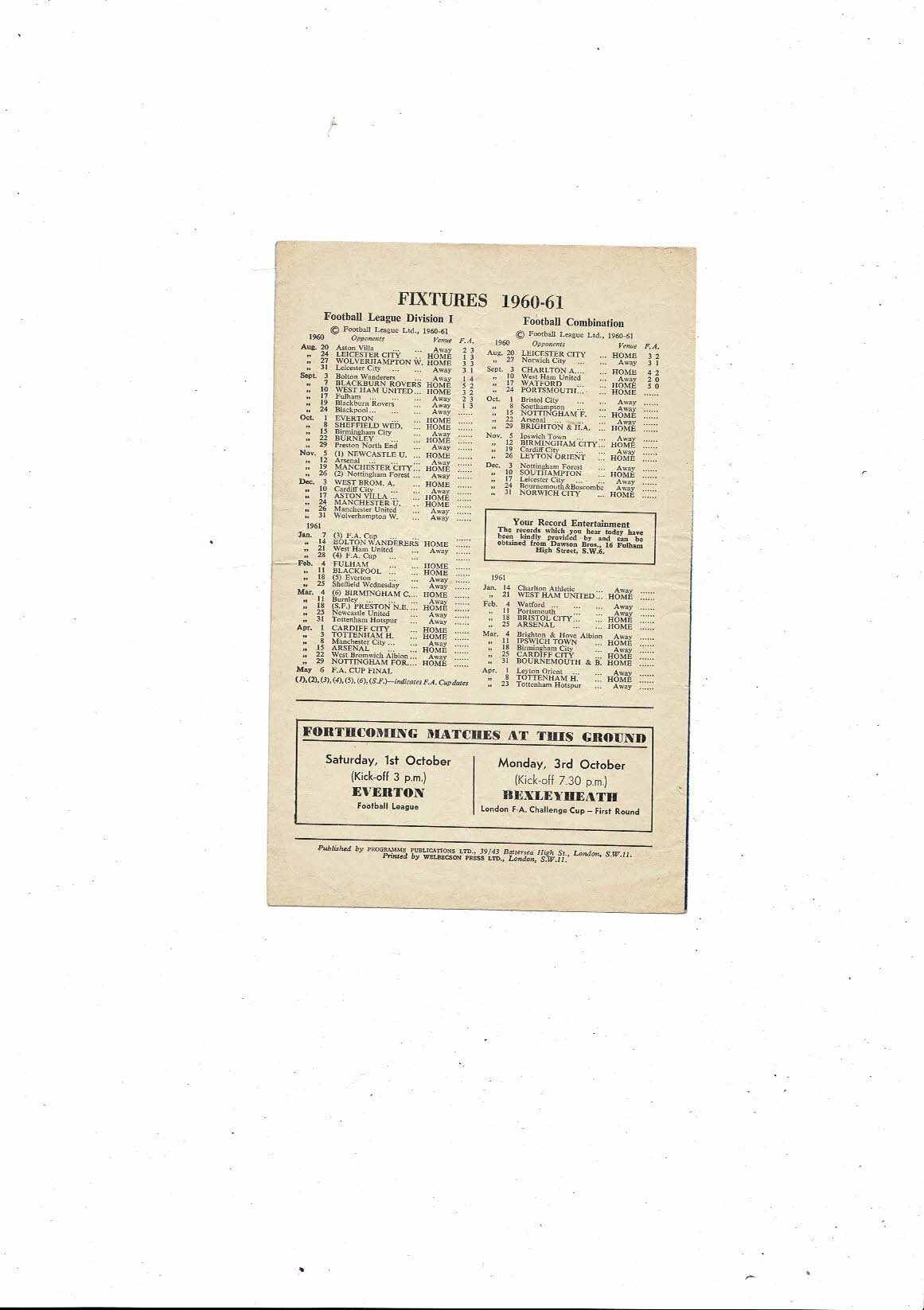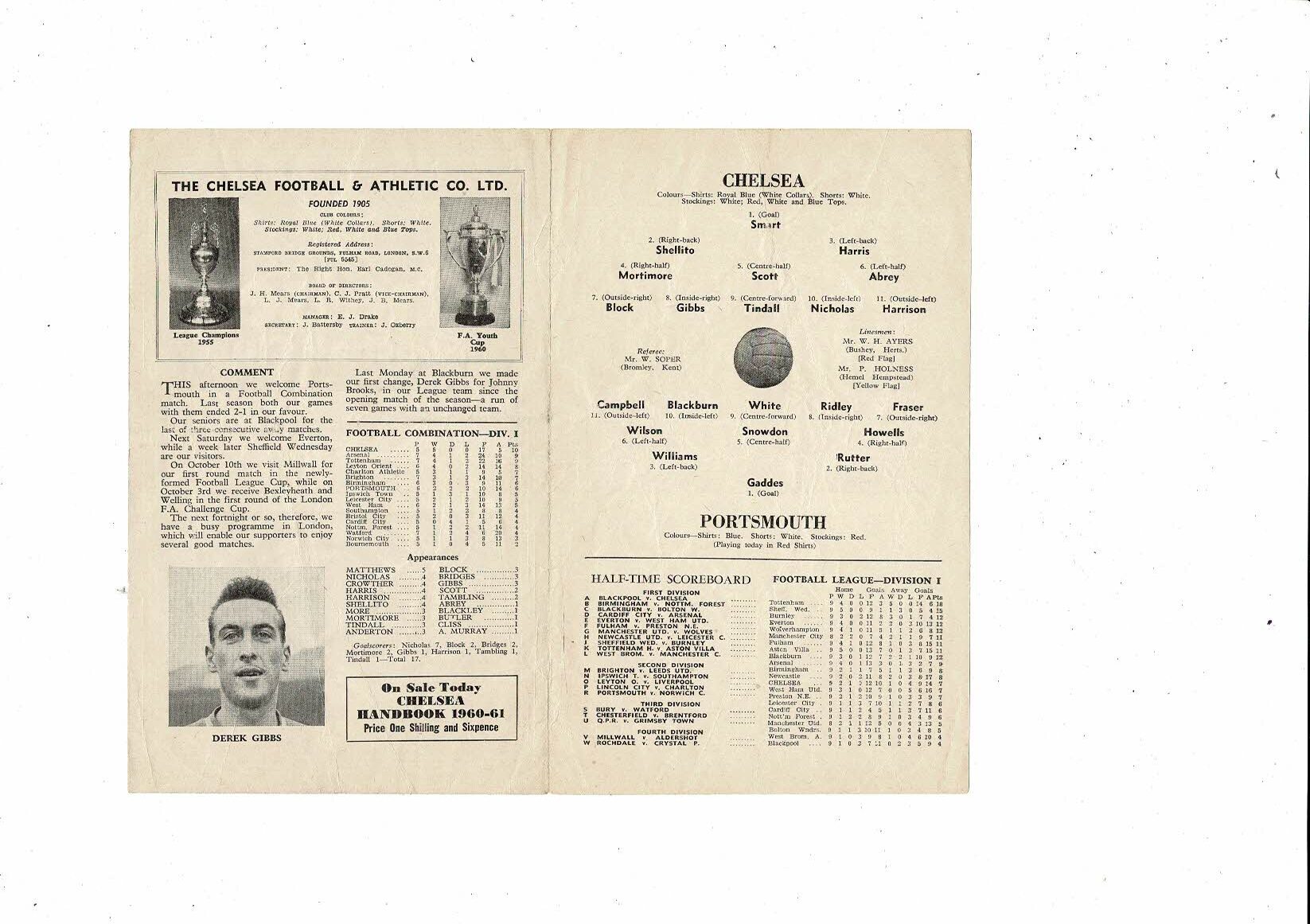 Chelsea v Portsmouth Football Combination Programme 1960/61