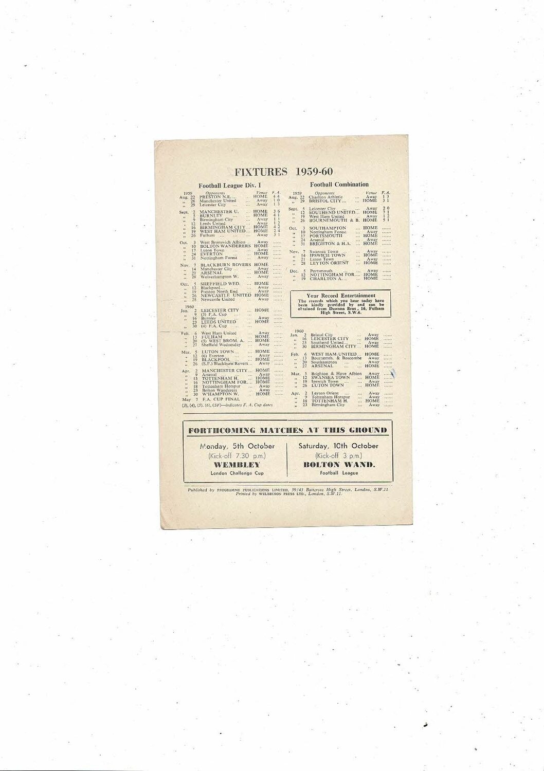 This original 4 page Football Programme is creased with some minor staining, very tiny nic on edge, score on front, score, scorers & one result noted. Please see scans.
