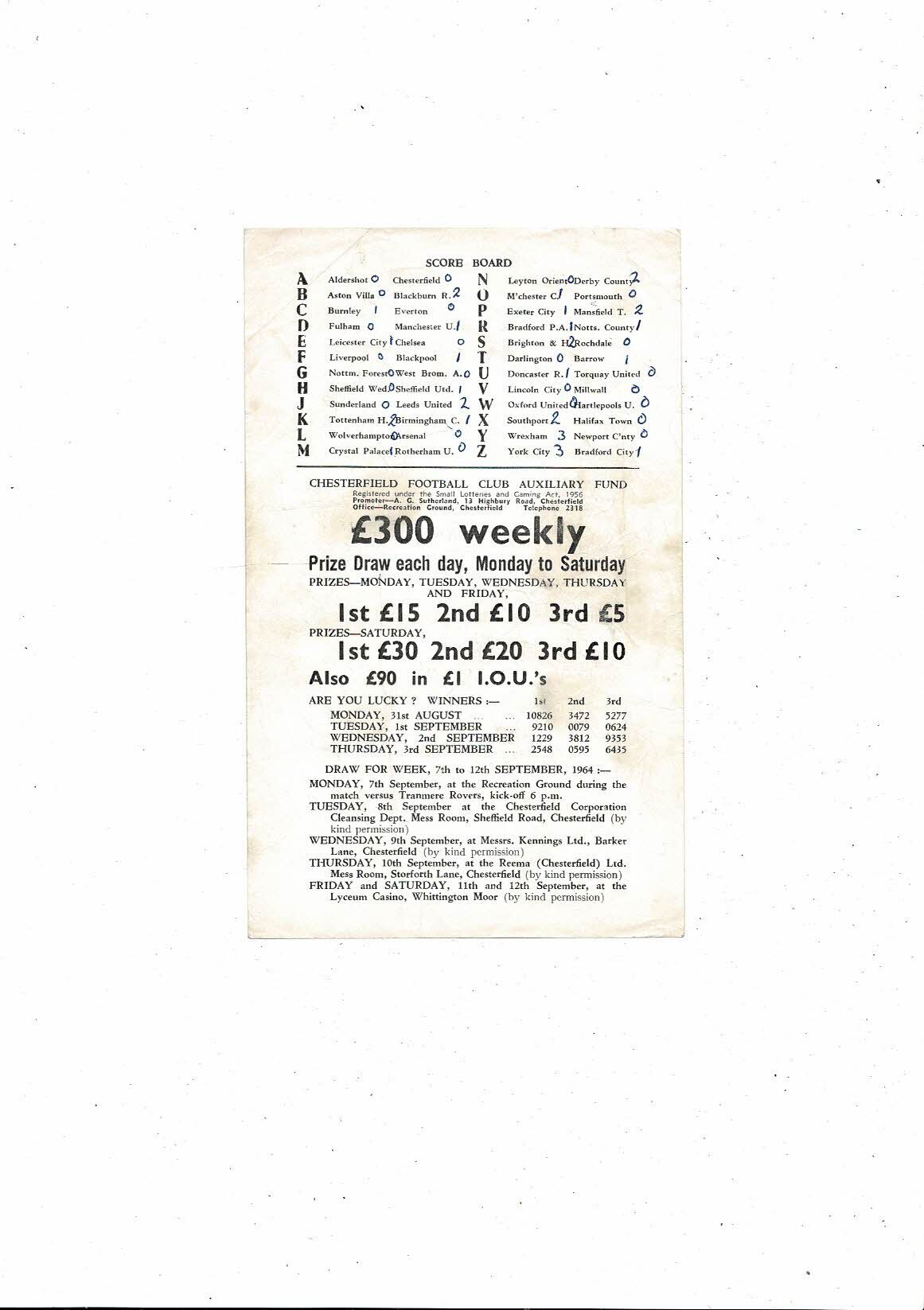 This Original Single Sheet Football Programme is creased with some staining, score, scorers, team changes & some results noted. Please see scans.