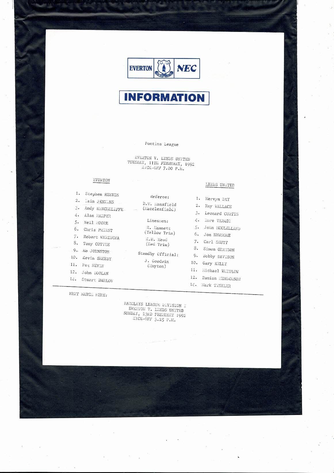 Everton v Leeds United Pontins League Football Programme 1991/92