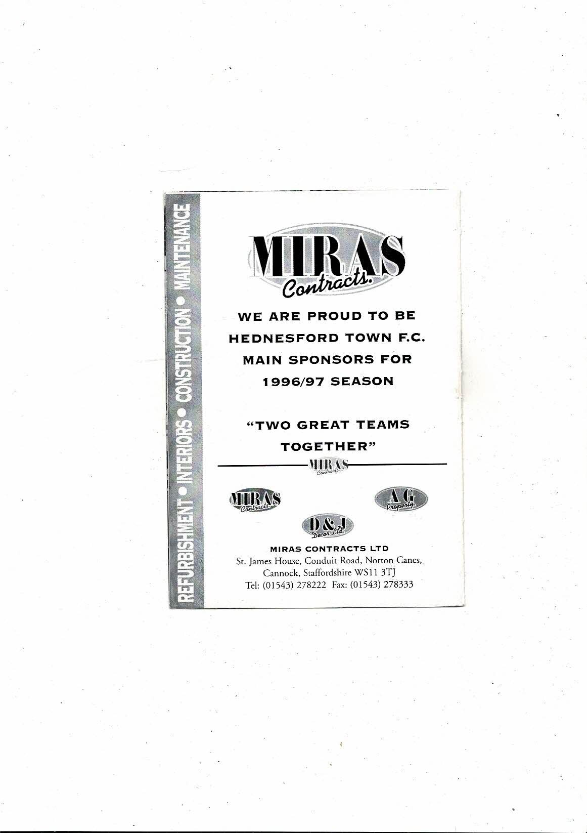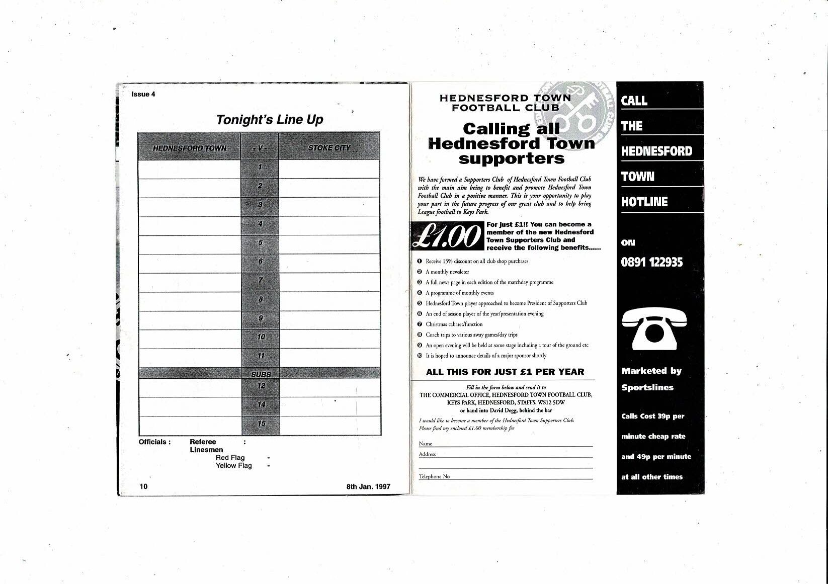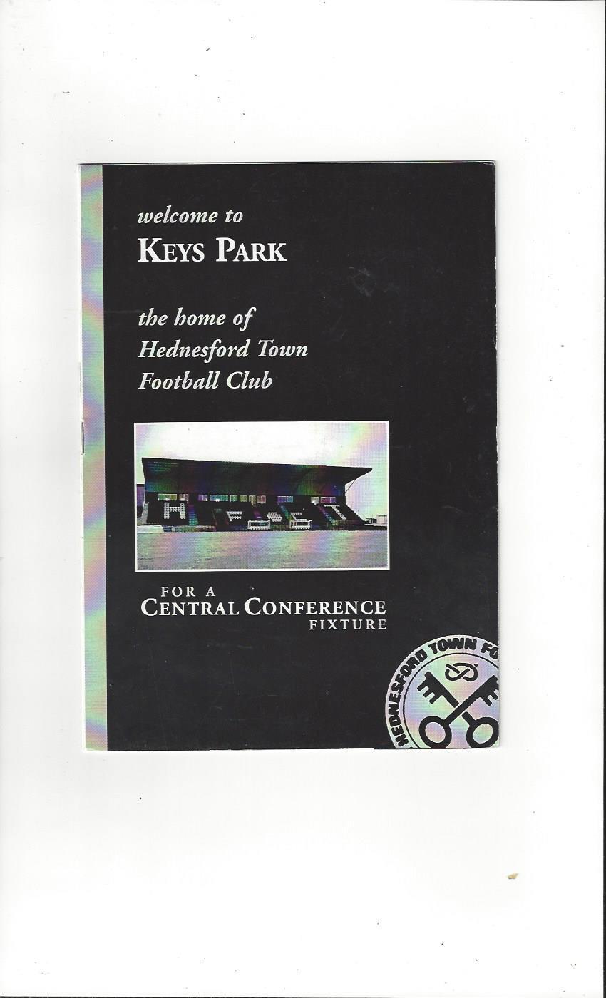 Hednesford Town v Stoke City Reserves Football Programme 1996/97