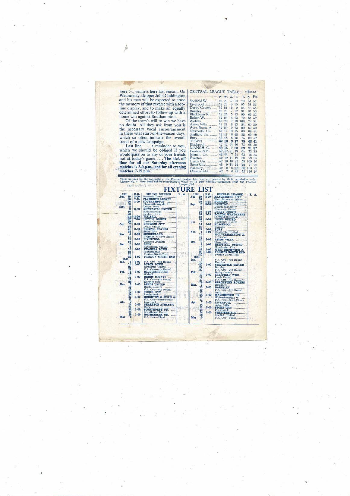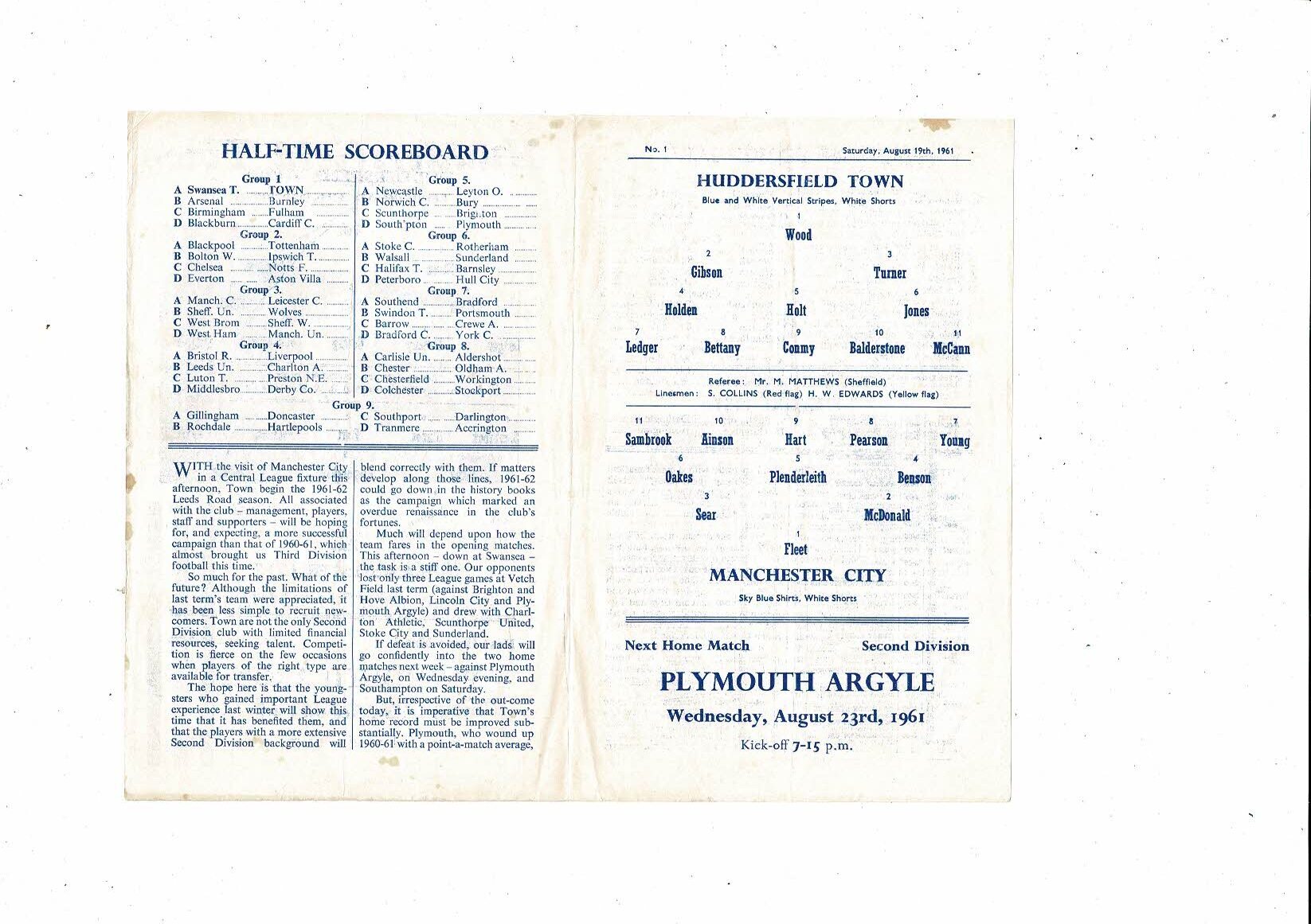 Huddersfield Town v Manchester City Central League Football Programme 1961/62