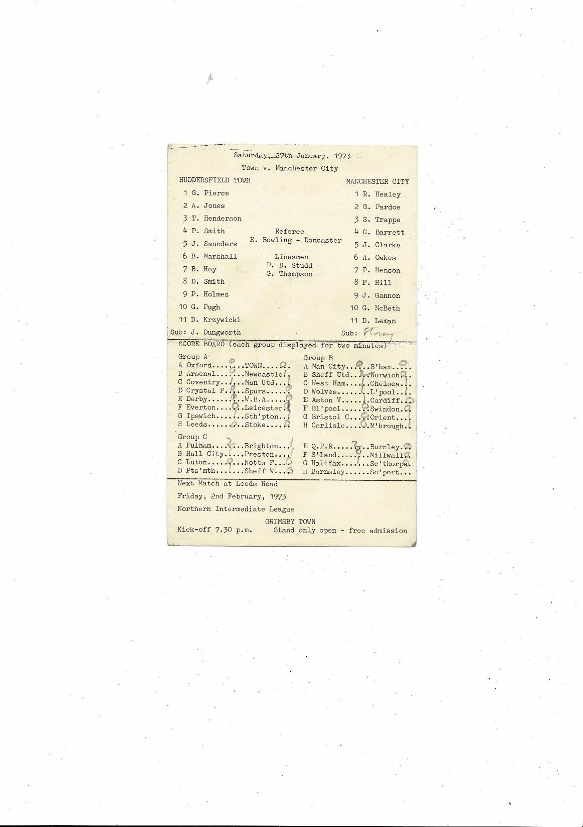 Huddersfield Town v Manchester City Central League Football Programme 1972/73