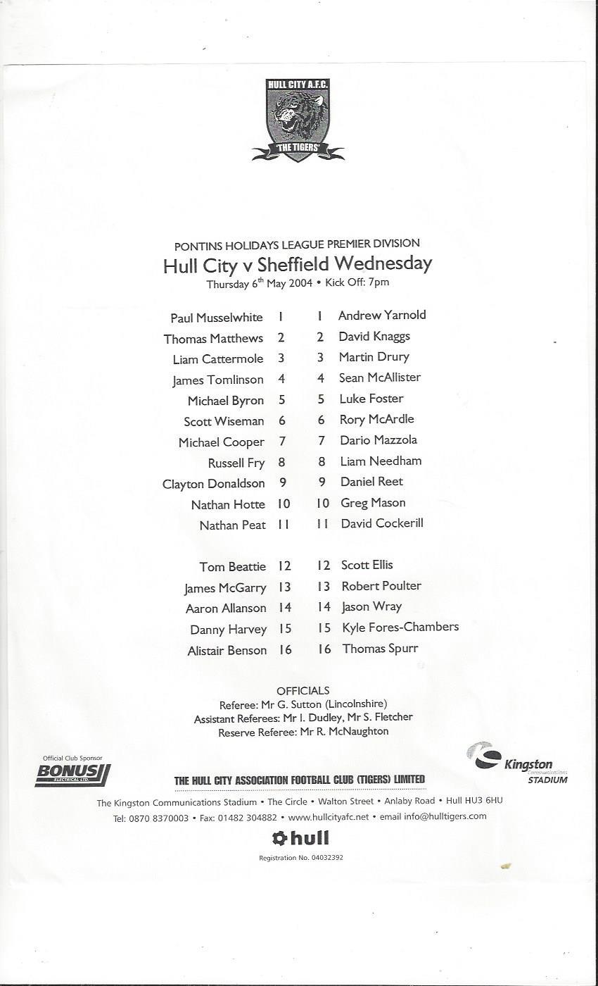 Hull City v Sheffield Wednesday Reserves Football Programme 2003/04
