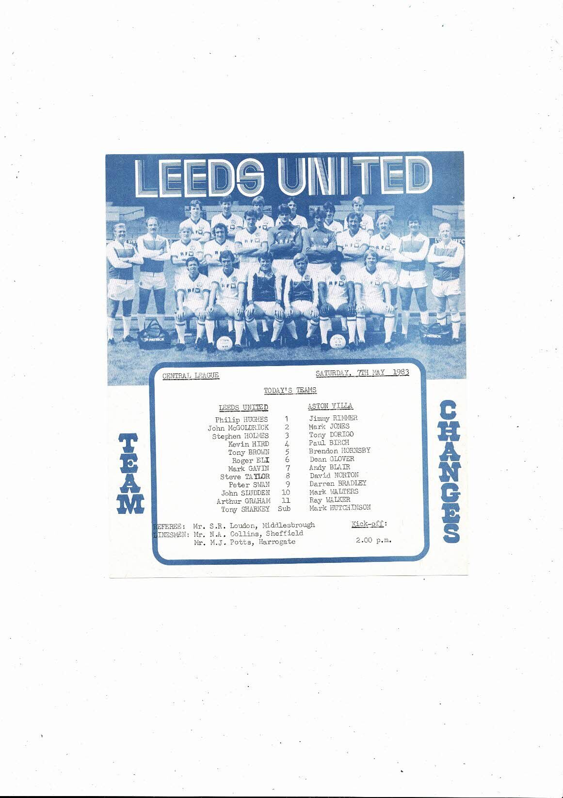 Leeds United v Aston Villa Central League Football Programme 1982/83