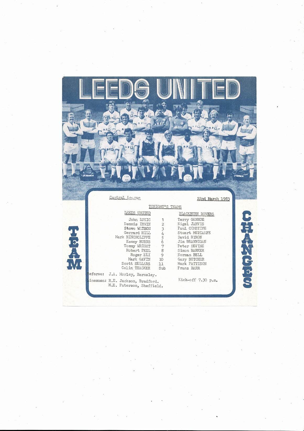 Leeds United v Blackburn Rovers Central League Football Programme 1982/83