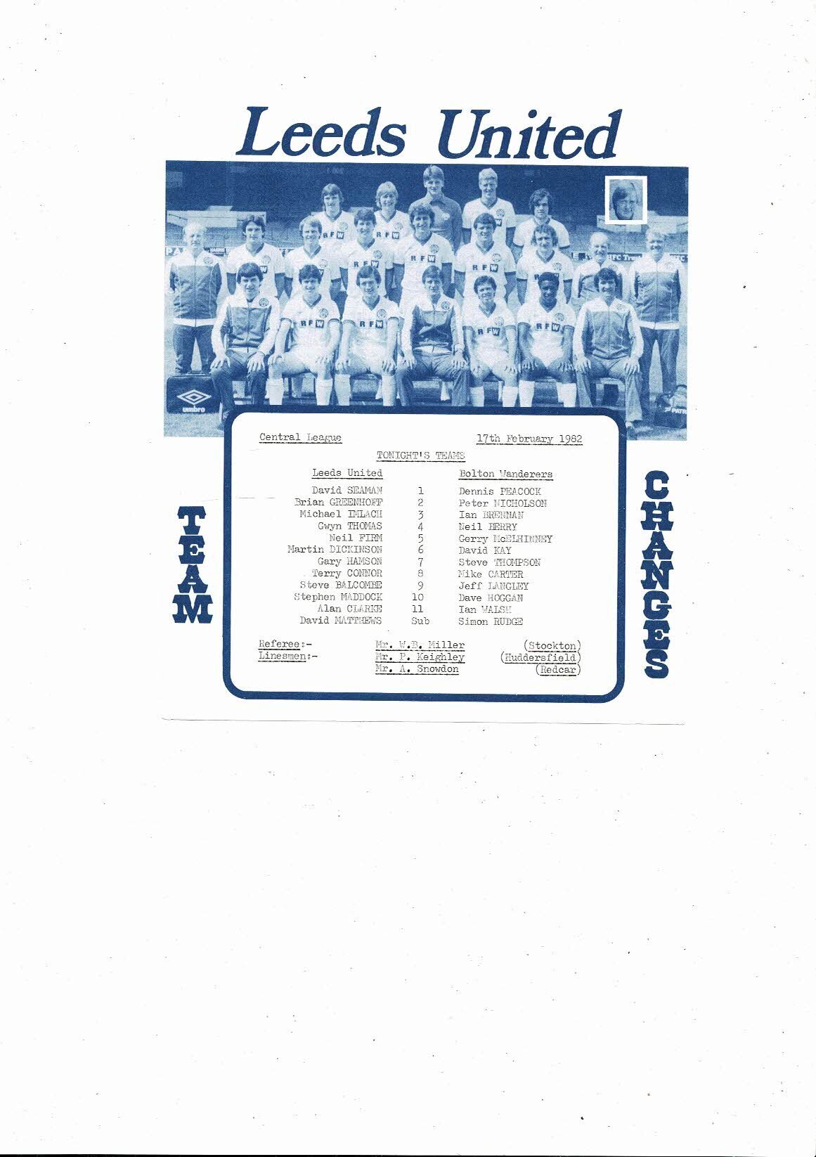 Leeds United v Bolton Wanderers Central League Football Programme 1981/82