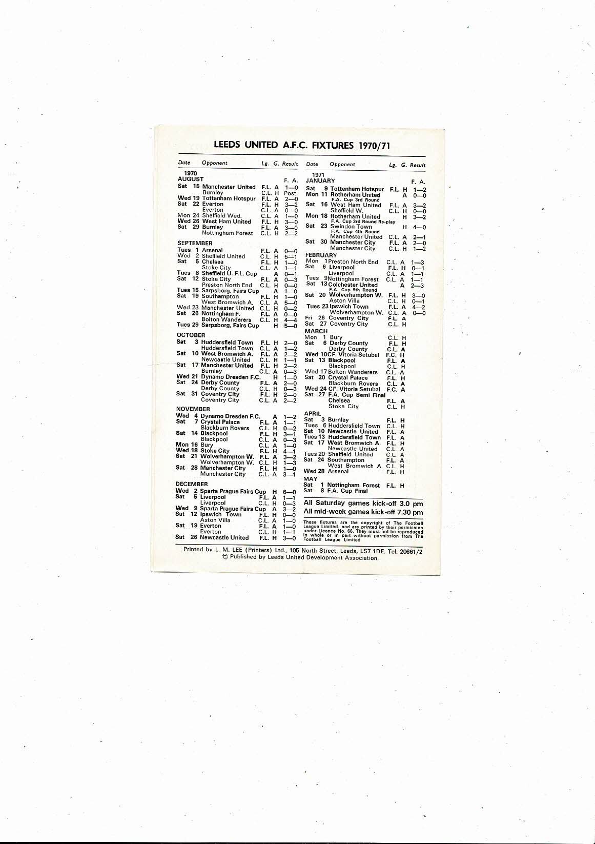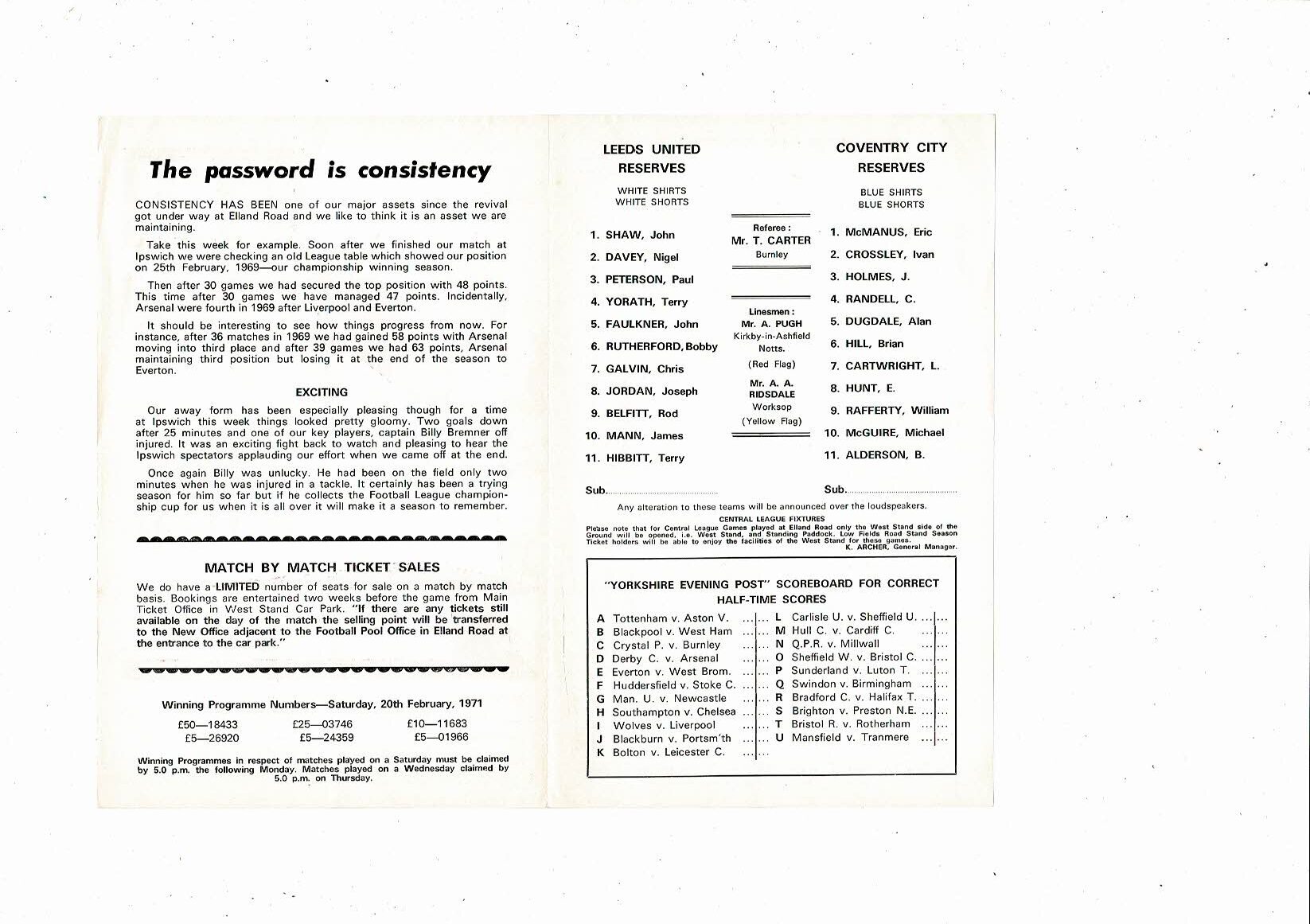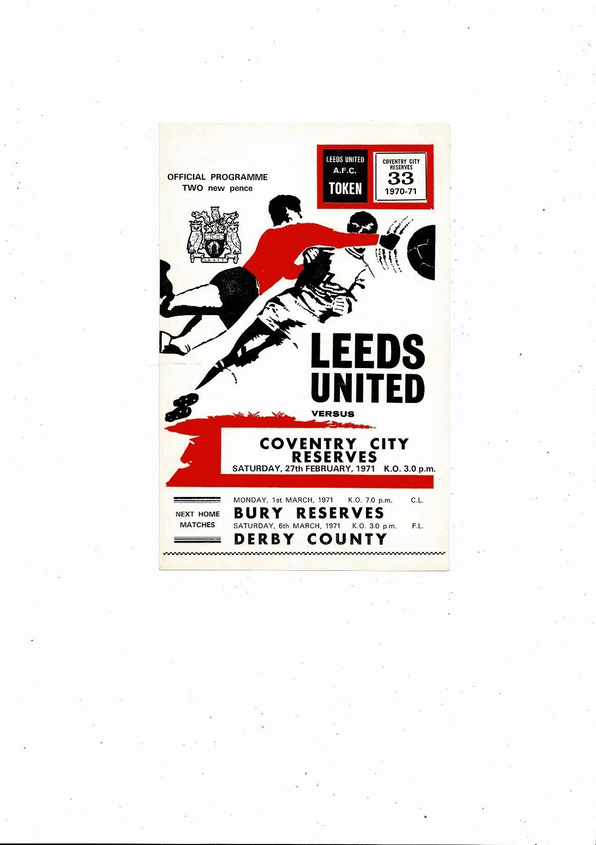 Leeds United v Coventry City Central League Football Programme 1970/71