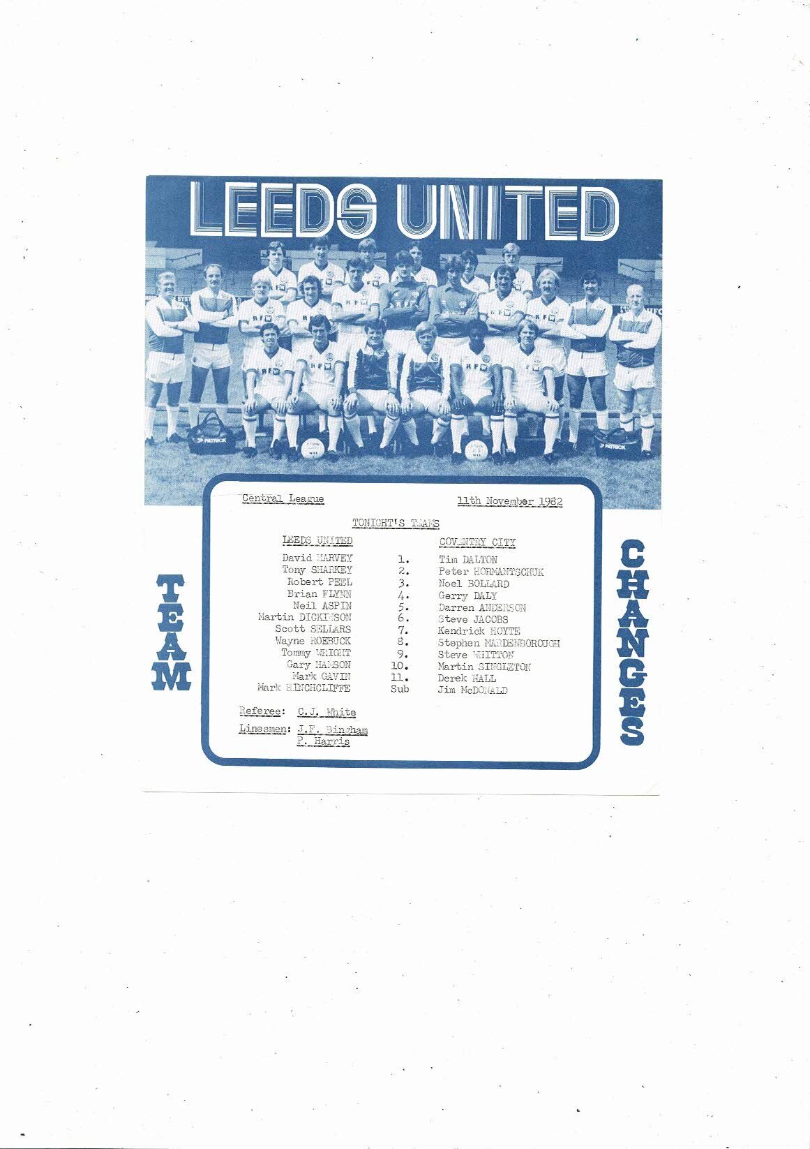 Leeds United v Coventry City Central League Football Programme 1982/83