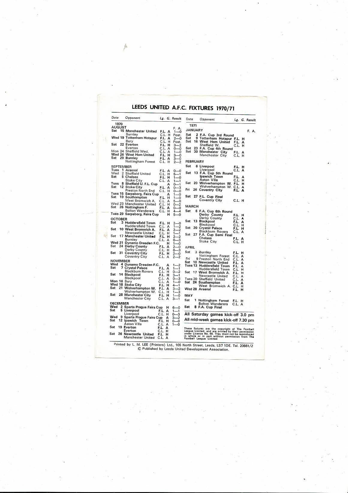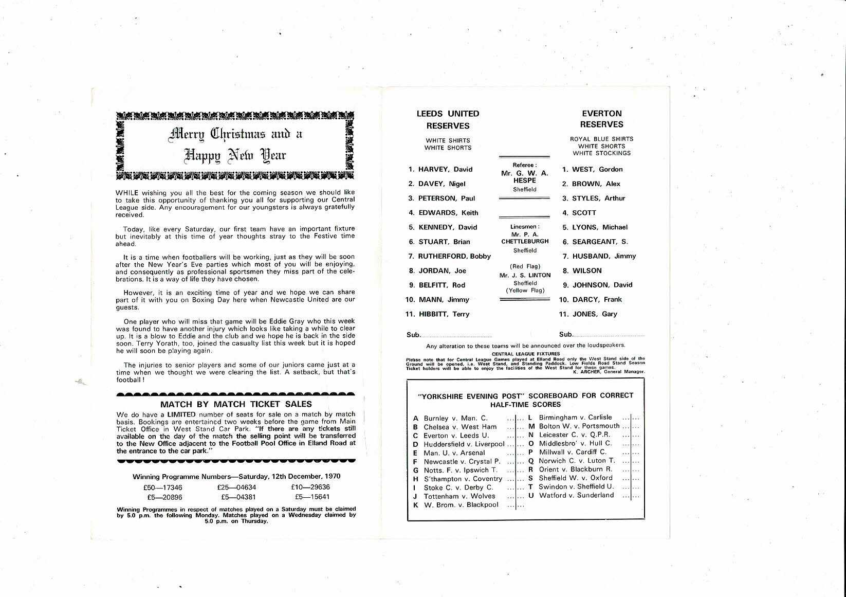 Leeds United v Everton Central League Football Programme 1970/71
