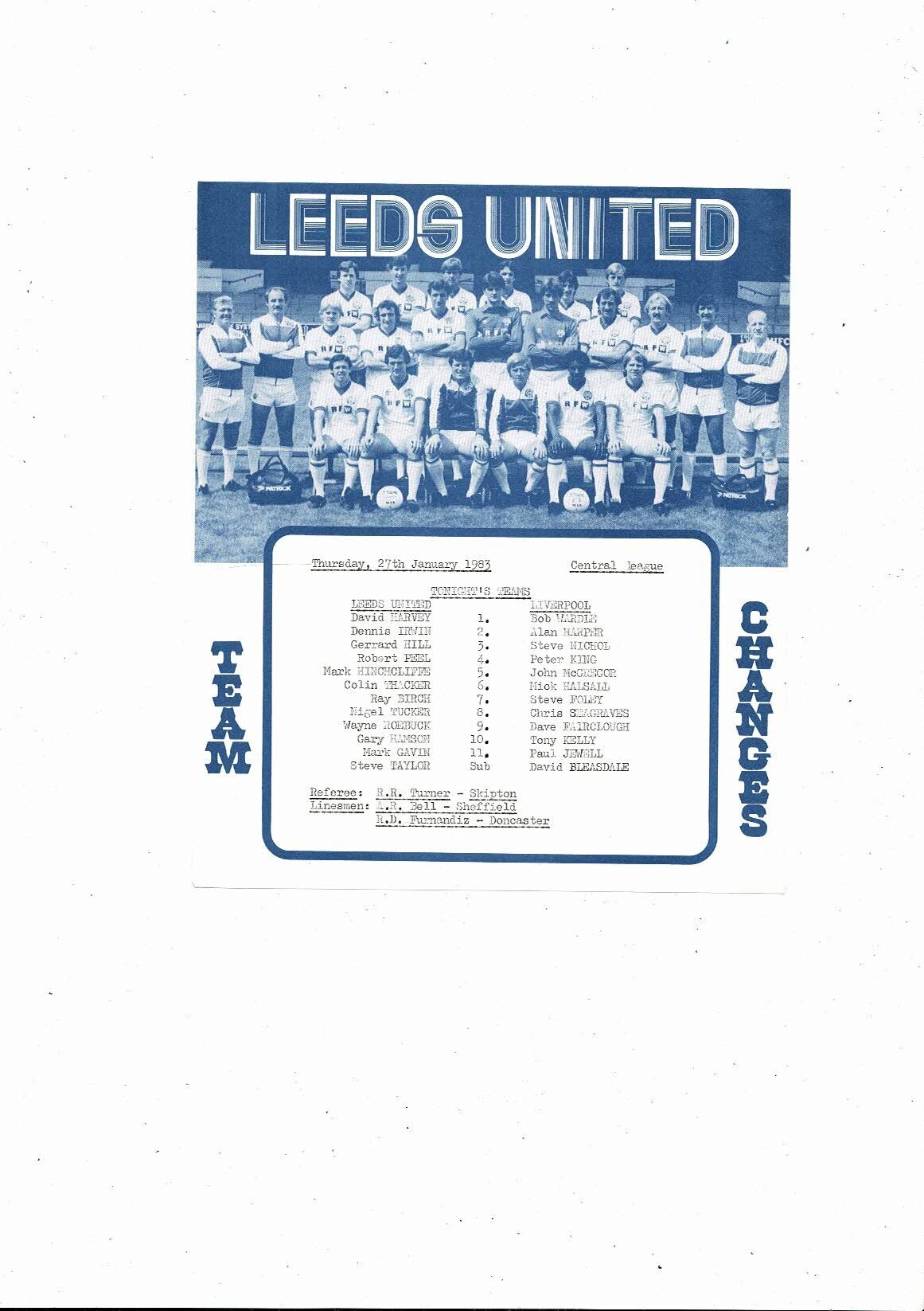 Leeds United v Liverpool Central League Football Programme 1982/83