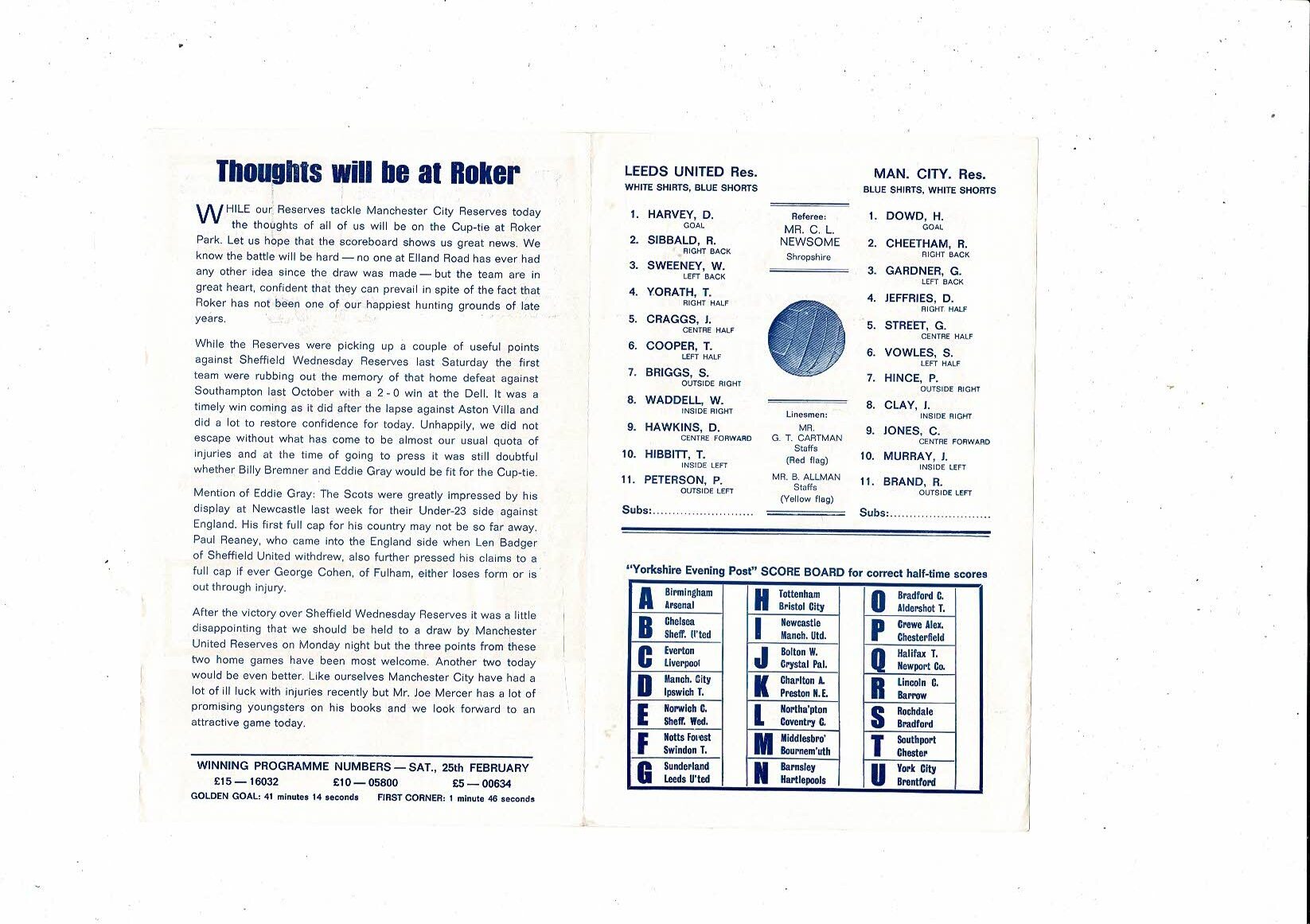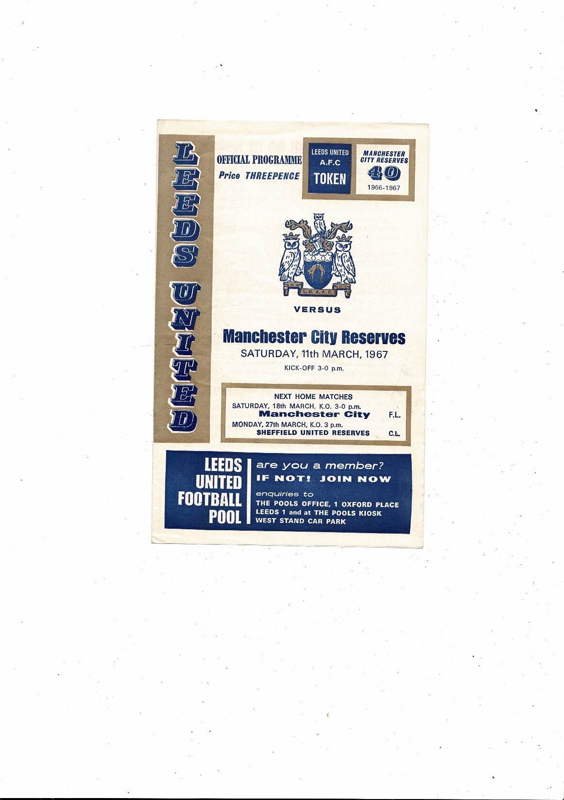 Leeds United v Manchester City Central League Football Programme 1966/67