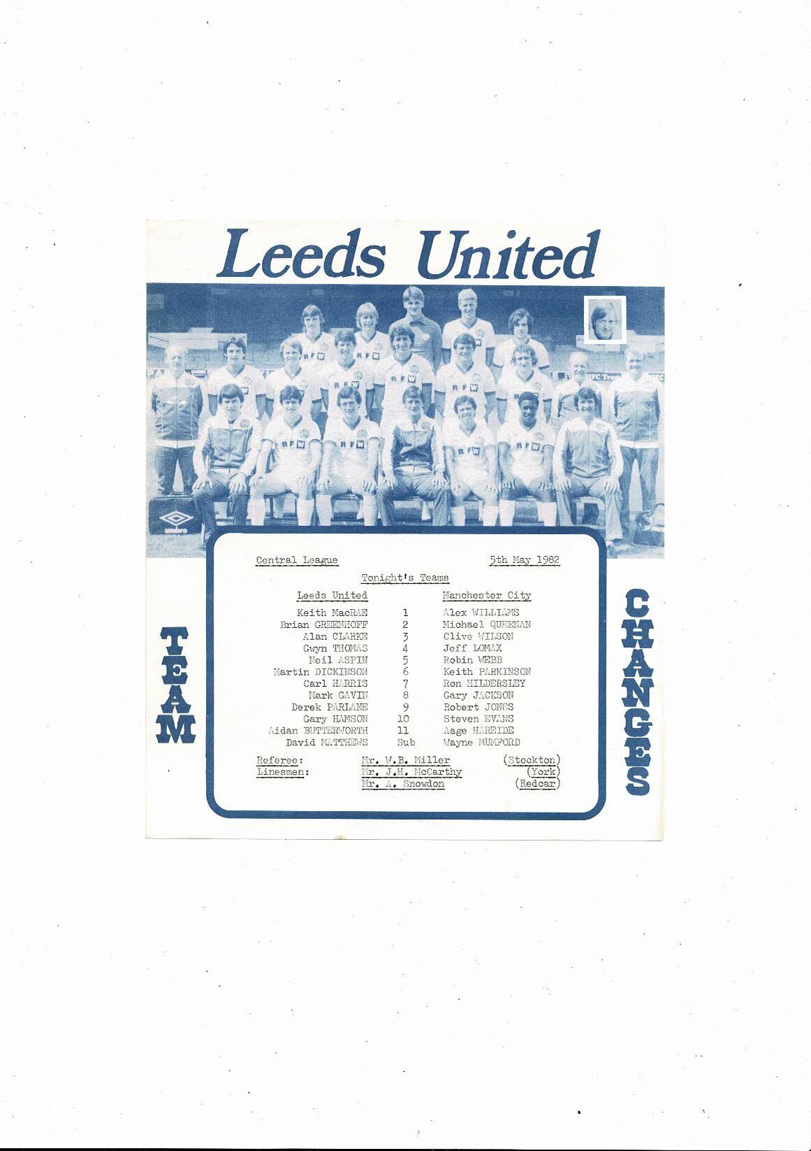 Leeds United v Manchester City Central League Football Programme 1981/82