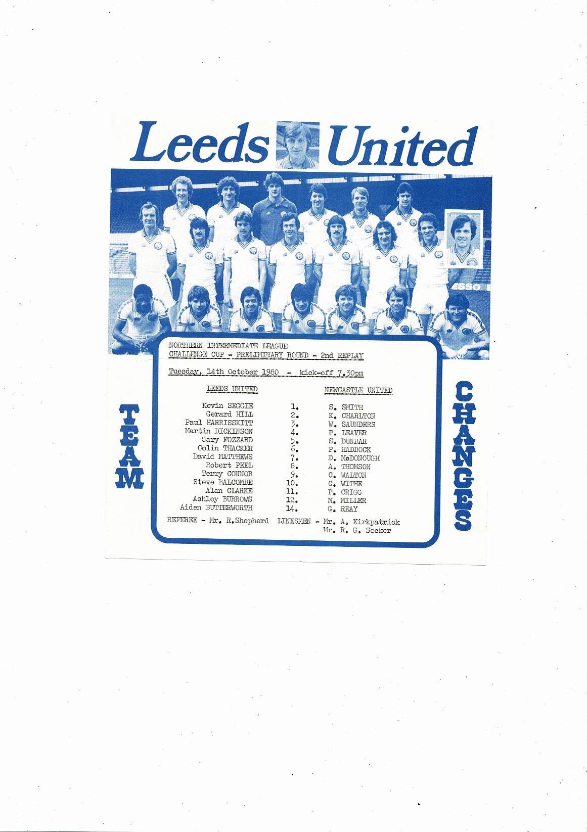 Leeds United v Newcastle United NI League Cup Replay Football Programme 1980/81