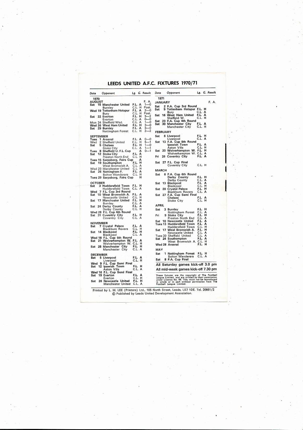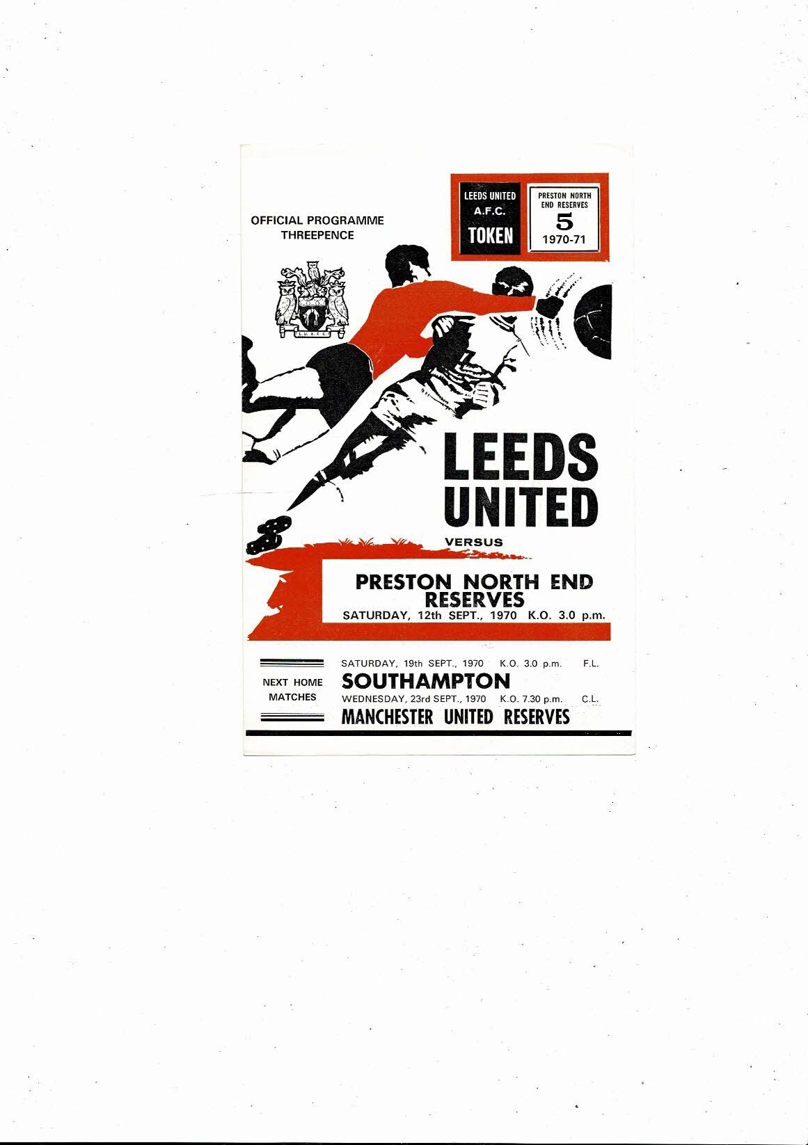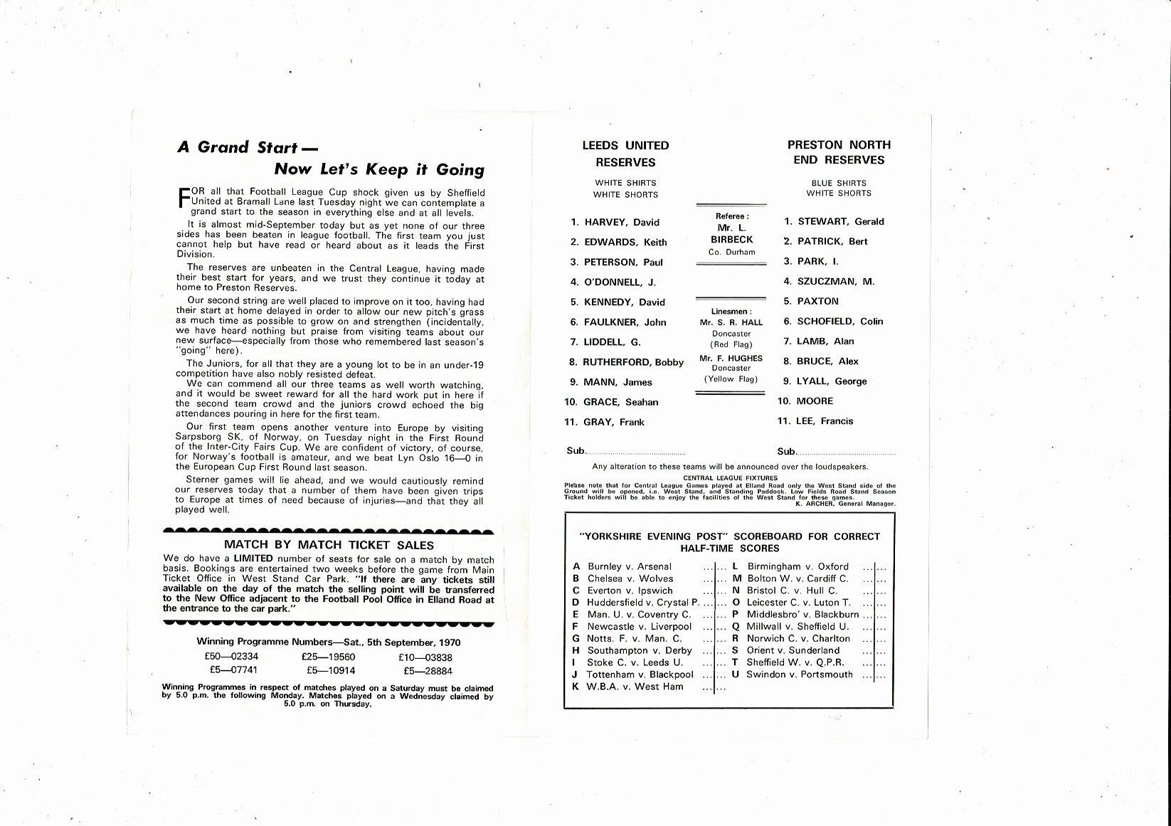 Leeds United v Preston Reserves Football Programme 1970/71