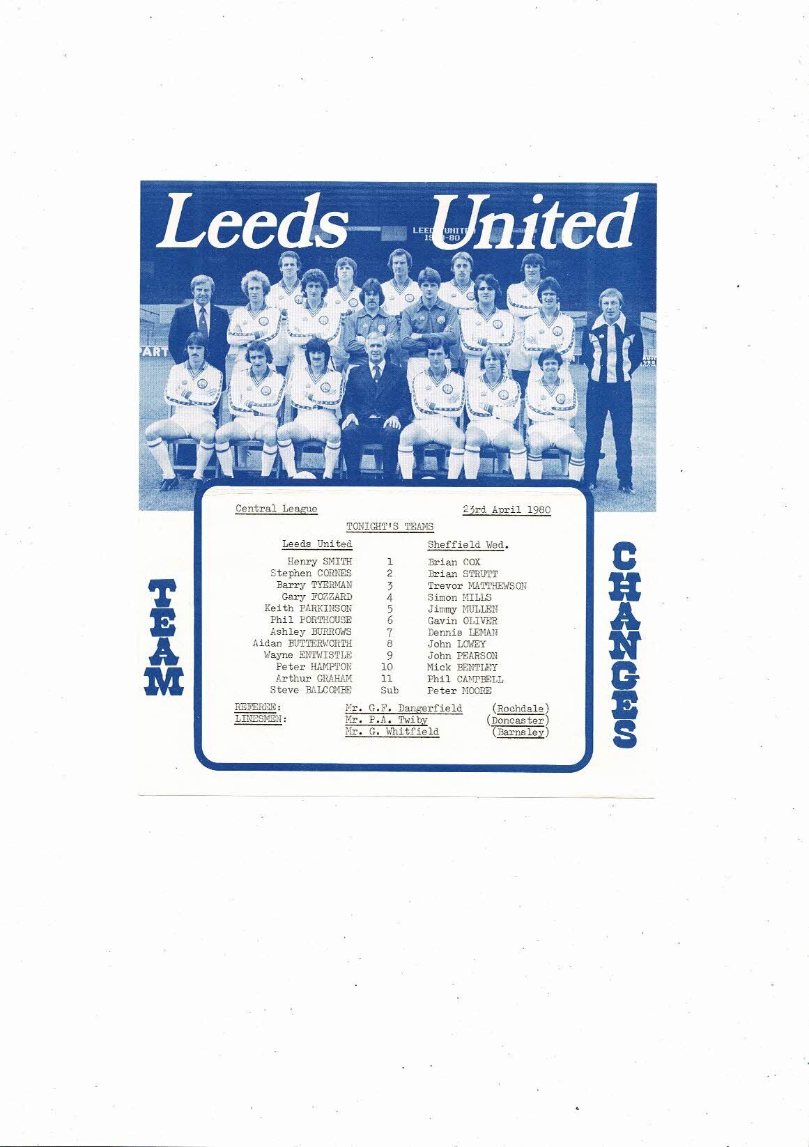 Leeds United v Sheffield Wednesday Central League Football Programme 1979/80