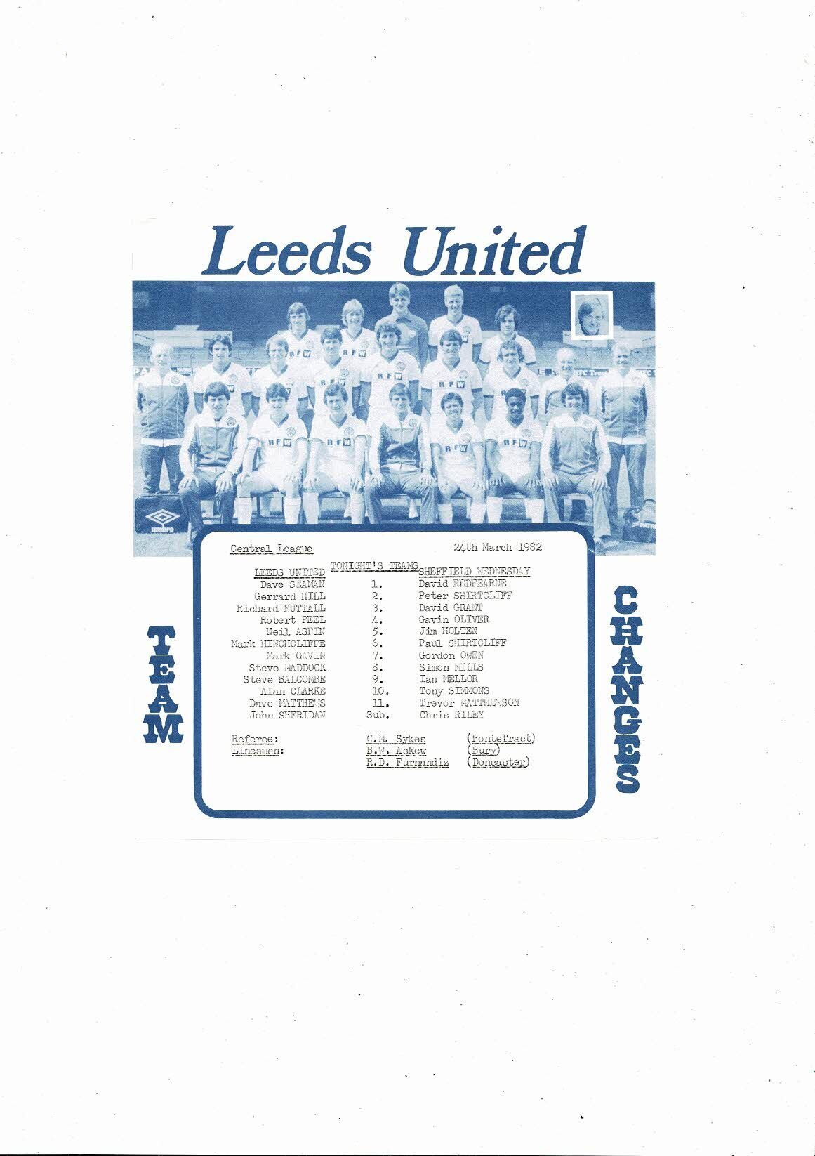 Leeds United v Sheffield Wednesday Central League Football Programme 1981/82