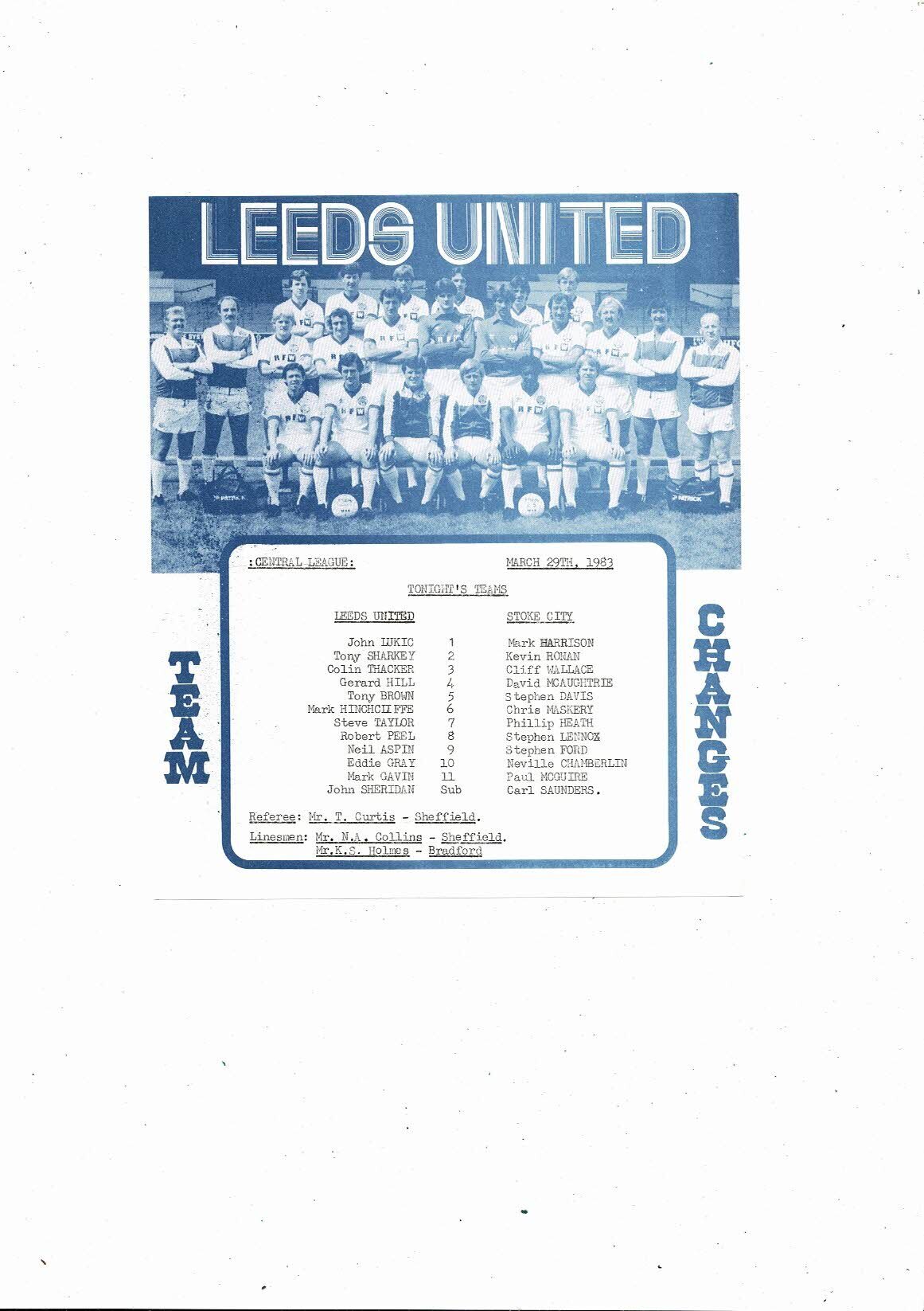 Leeds United v Stoke City Central League Football Programme 1982/83