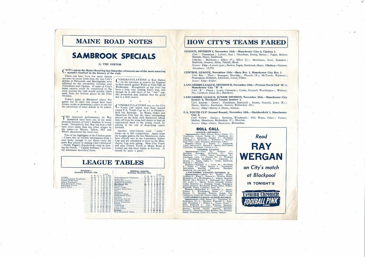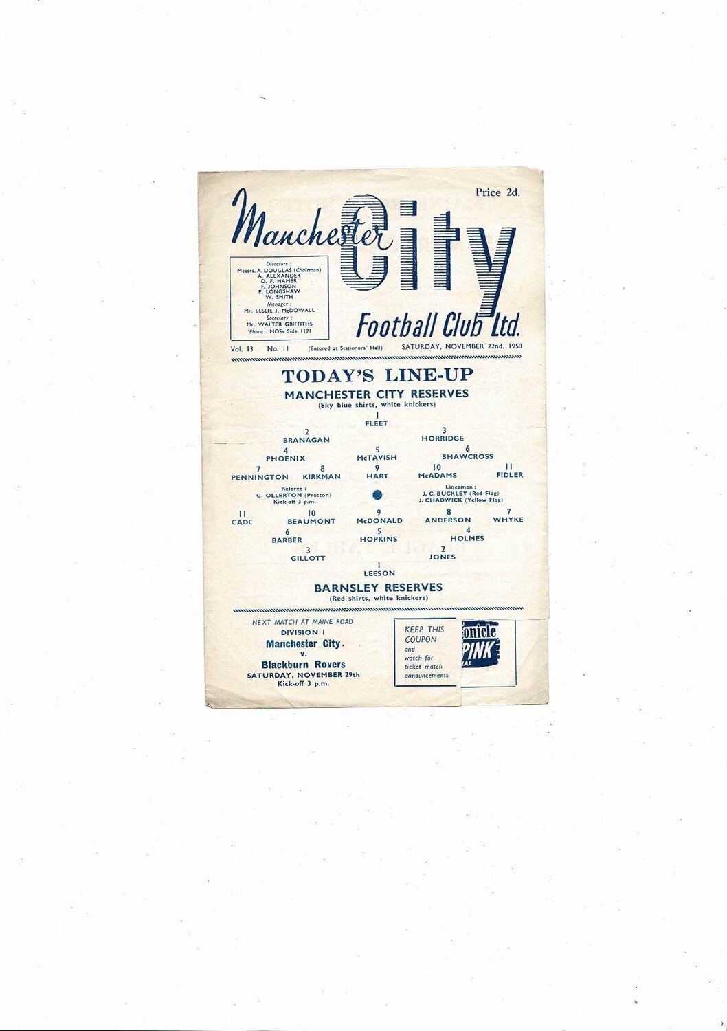 Manchester City v Barnsley Central League Football Programme 1958/59