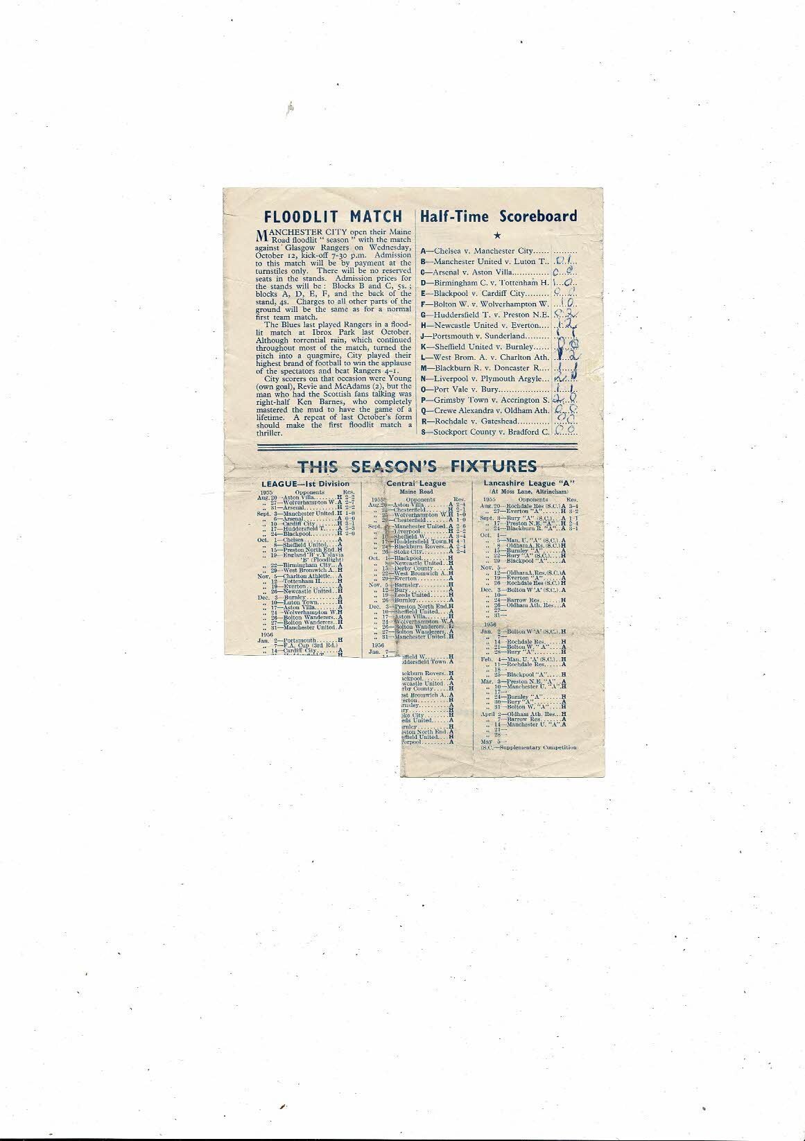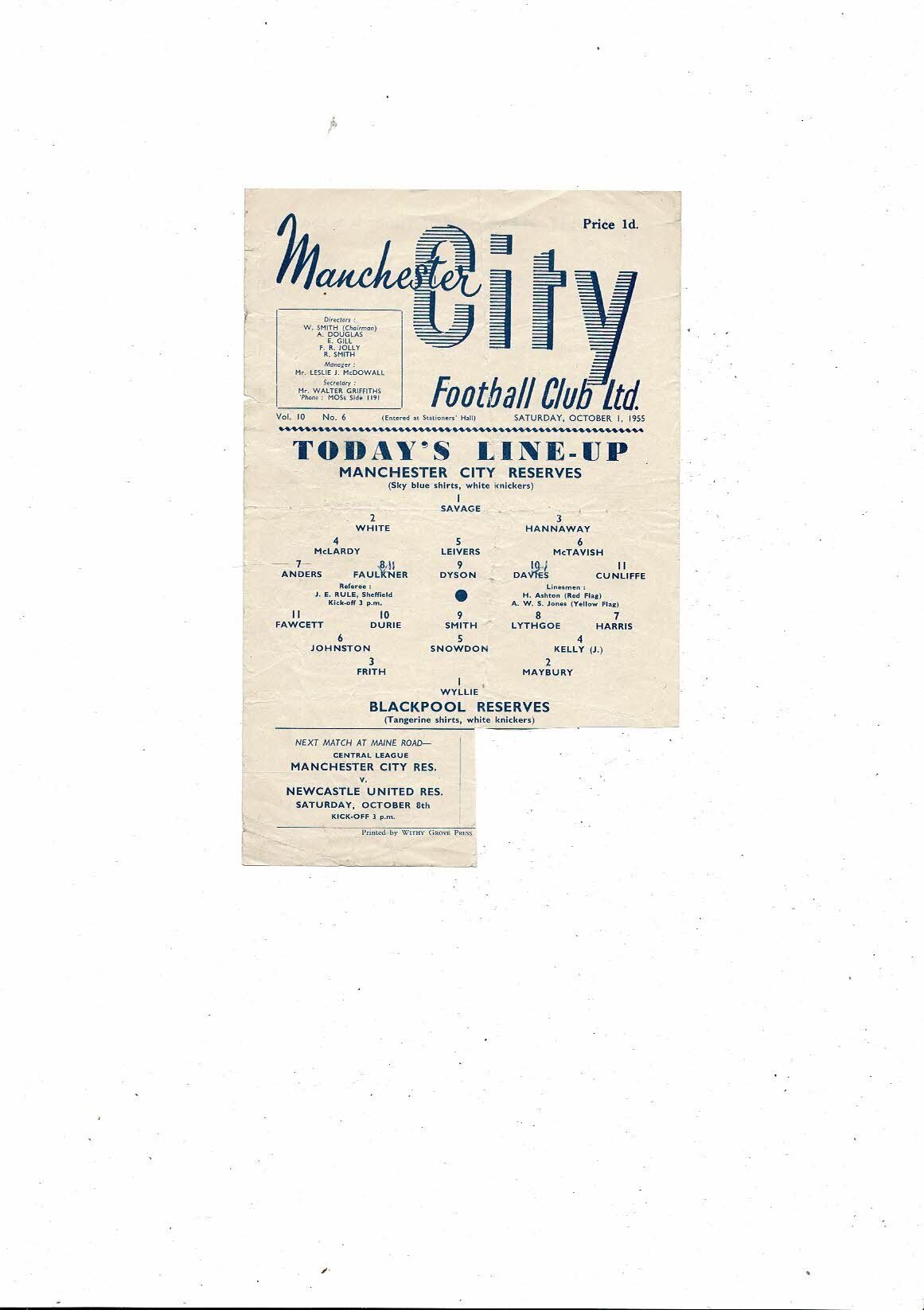 Manchester City v Blackpool Central League Football Programme 1955/56
