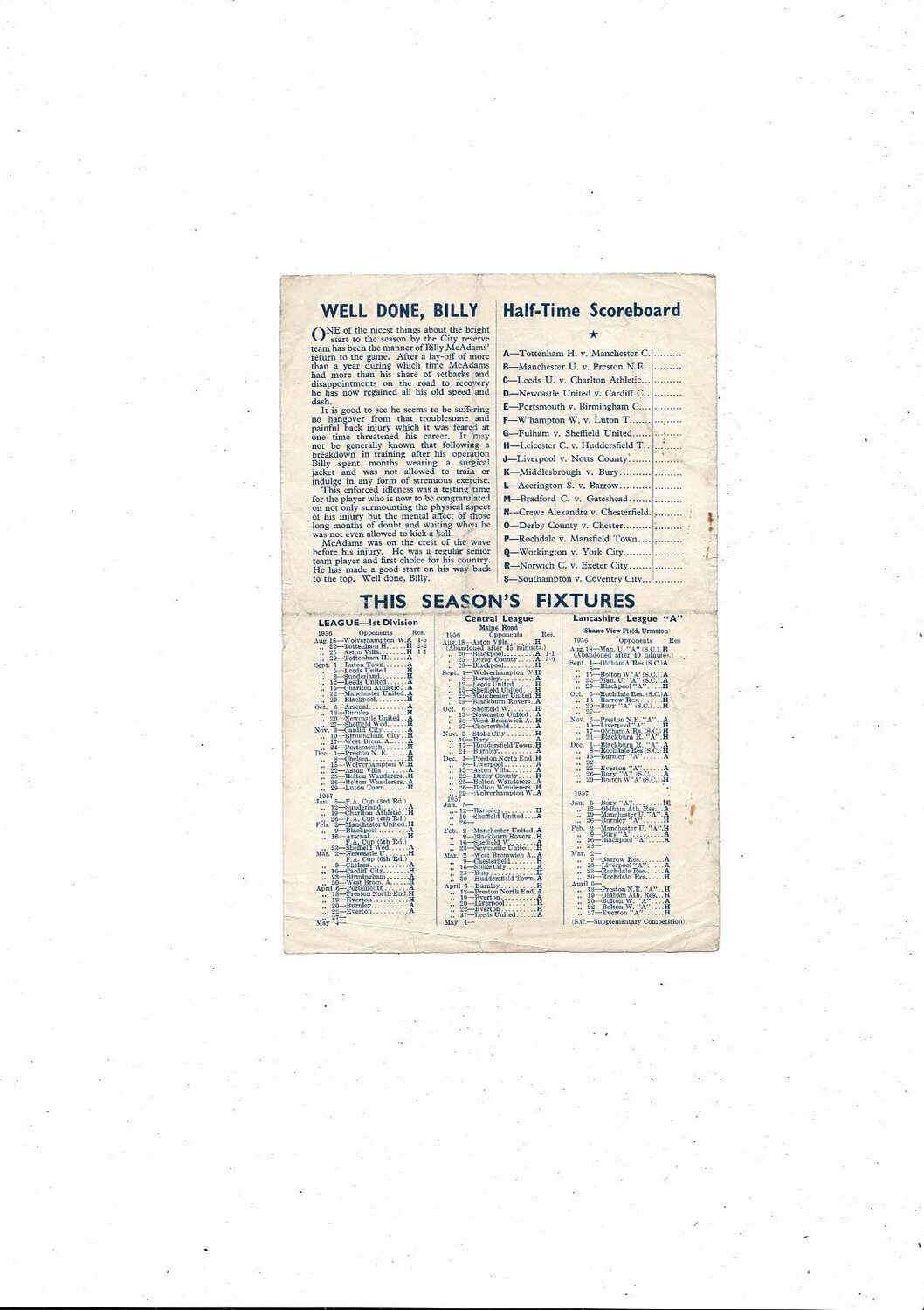 Manchester City v Blackpool Central League Football Programme 1956/57