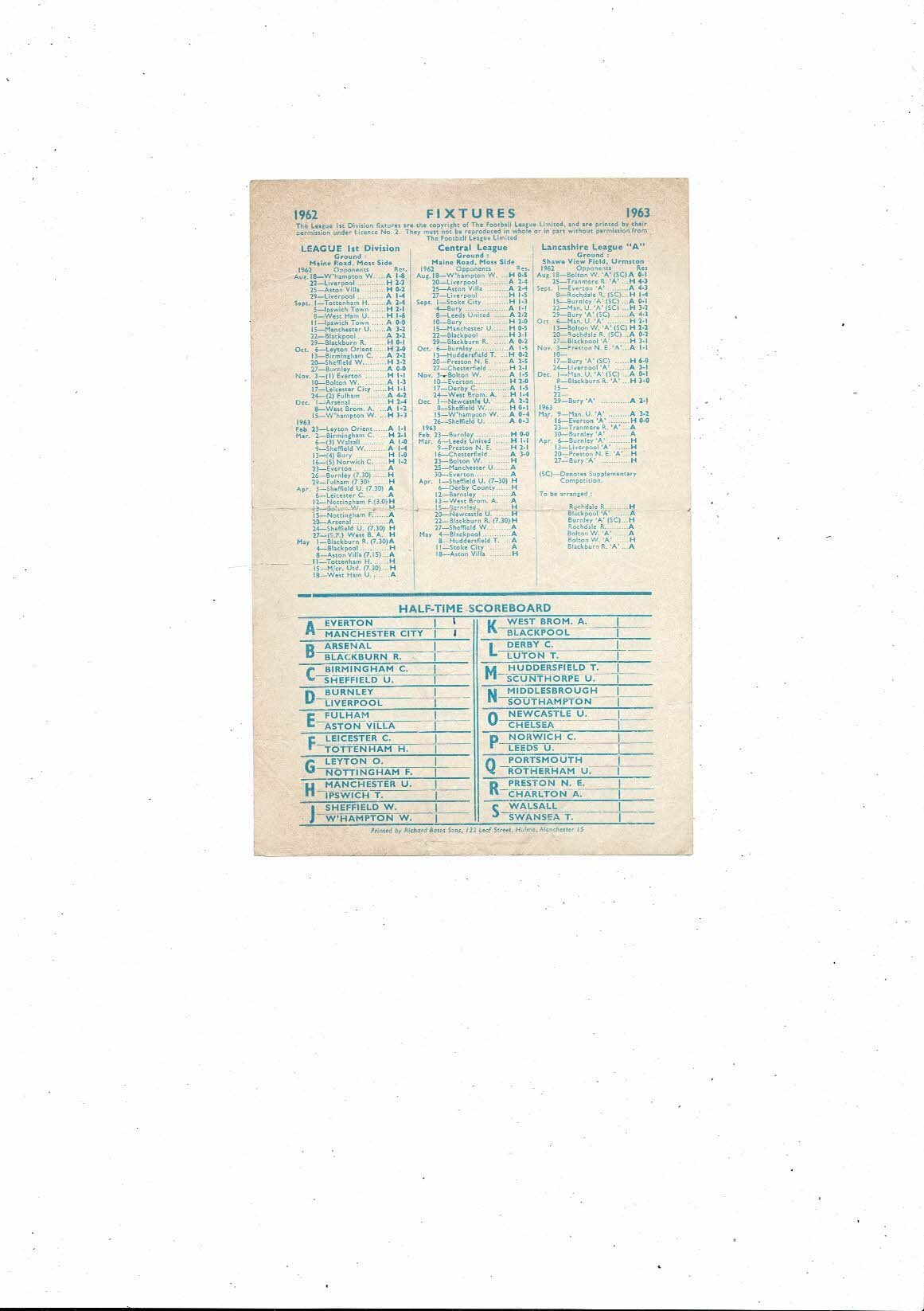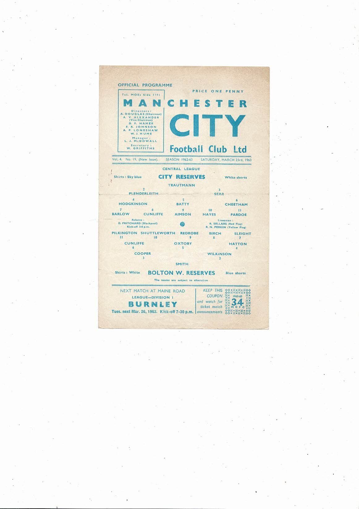 Manchester City v Bolton Wanderers Central League Football Programme 1962/63
