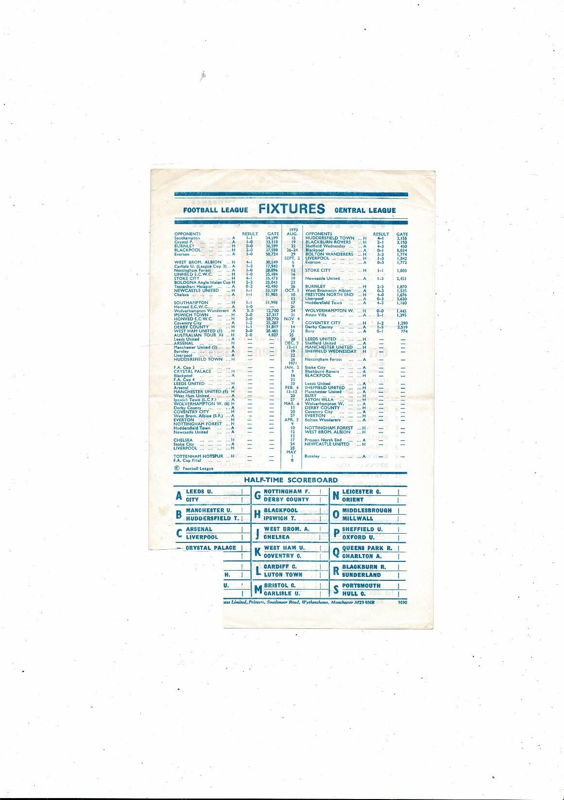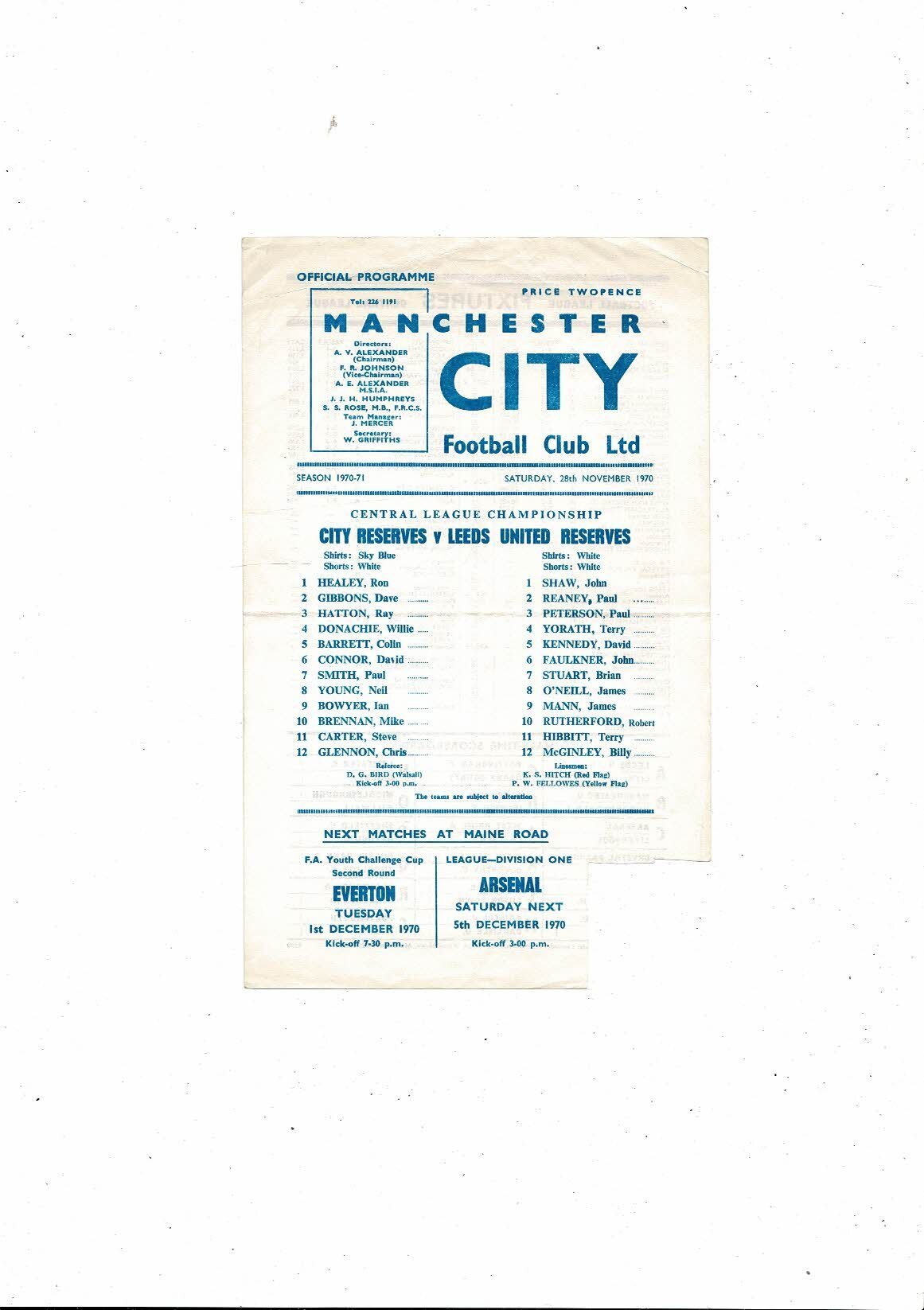 Manchester City v Leeds United Central League Football Programme 1970/71