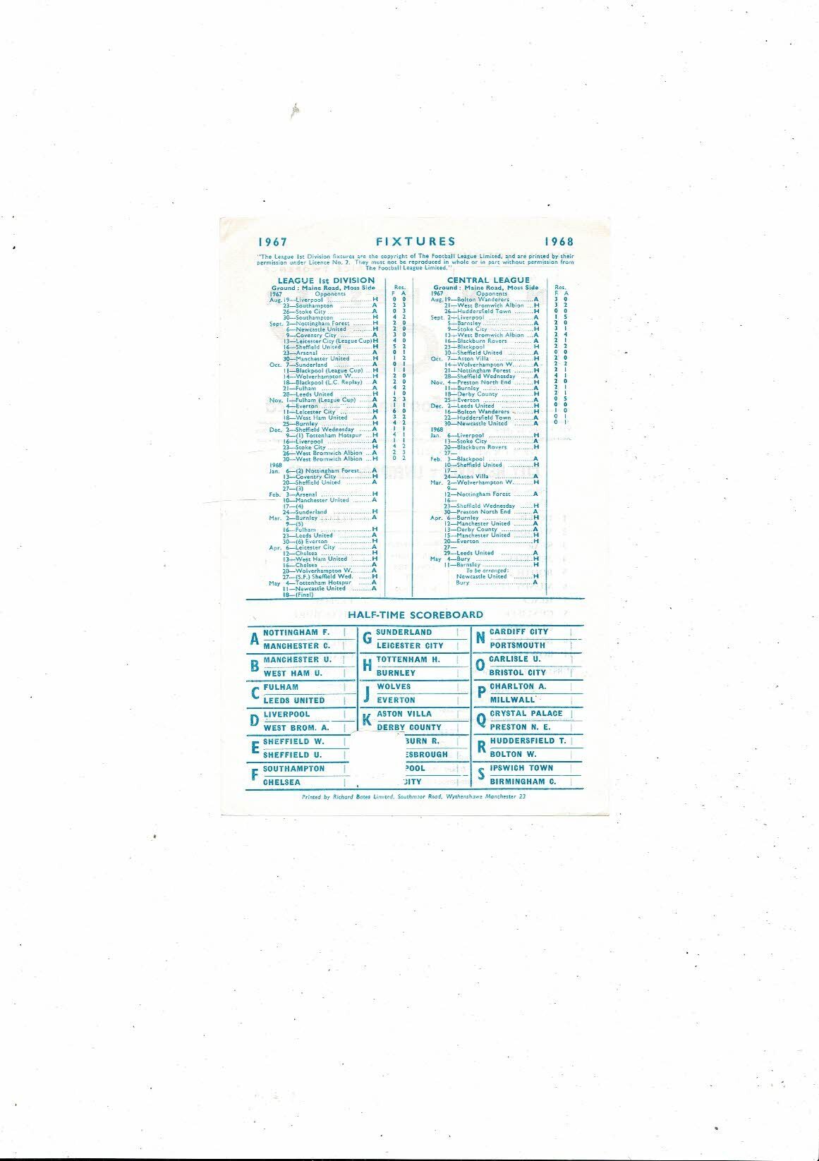 The Original Single Sheet Football Programme is slightly creased also has a fold with token removed. No handwriting. Please see scans