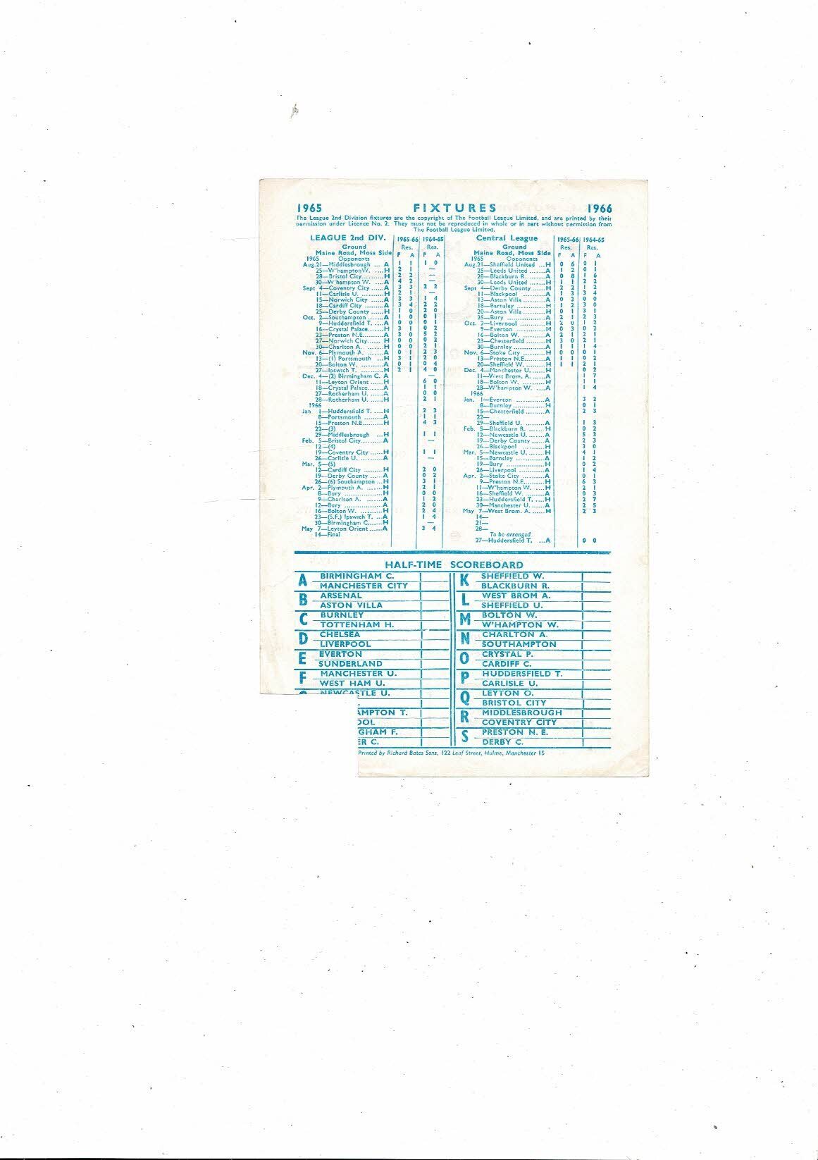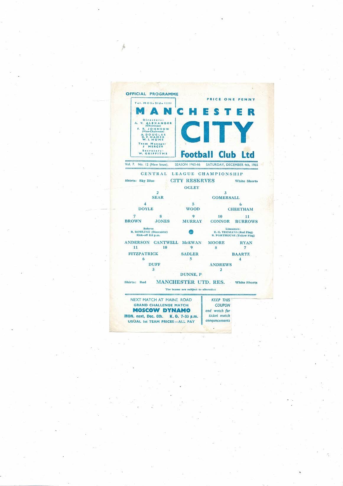 Manchester City v Manchester United Central League Football Programme 1965/66