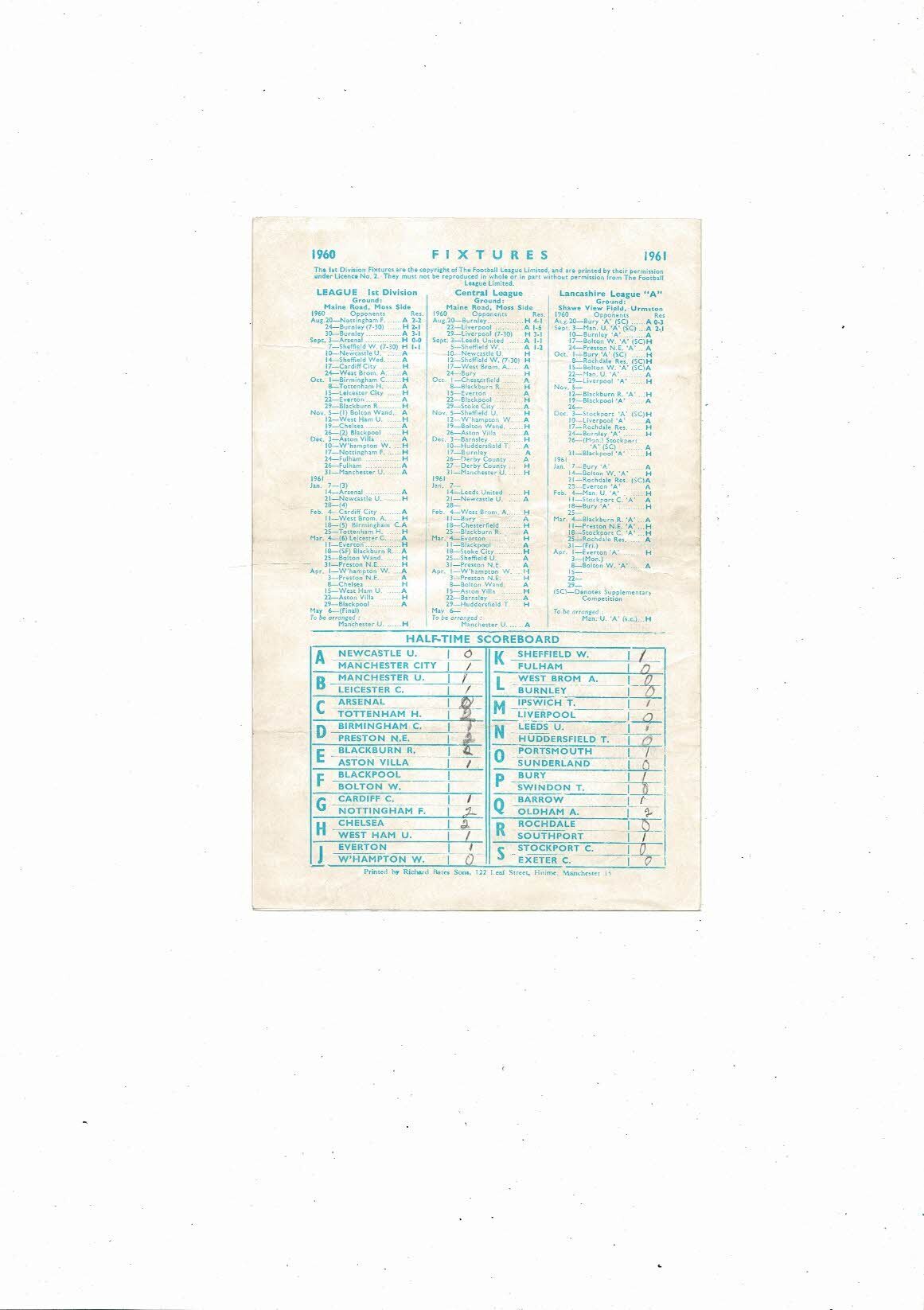 The Original 4 page Football Programme is creased & folded with some staining, tiny nic & thalf times noted in pencil. Please see scans