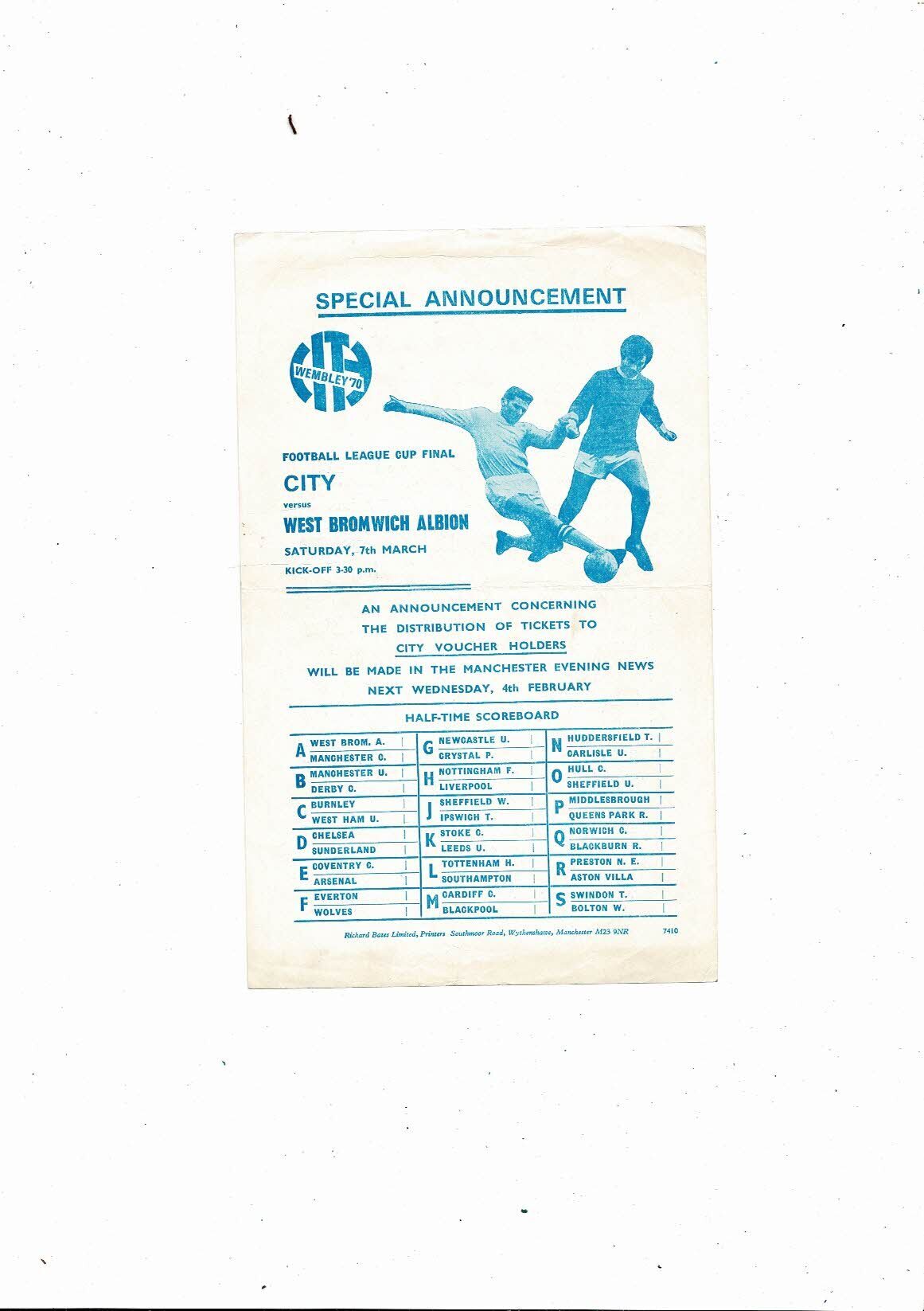 This Single Sheet Football Programme is creased also has a fold with some staining. No handwriting.