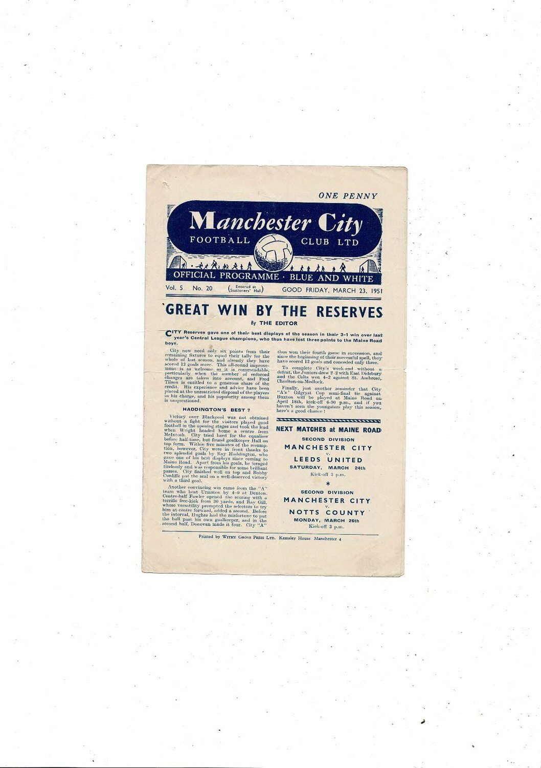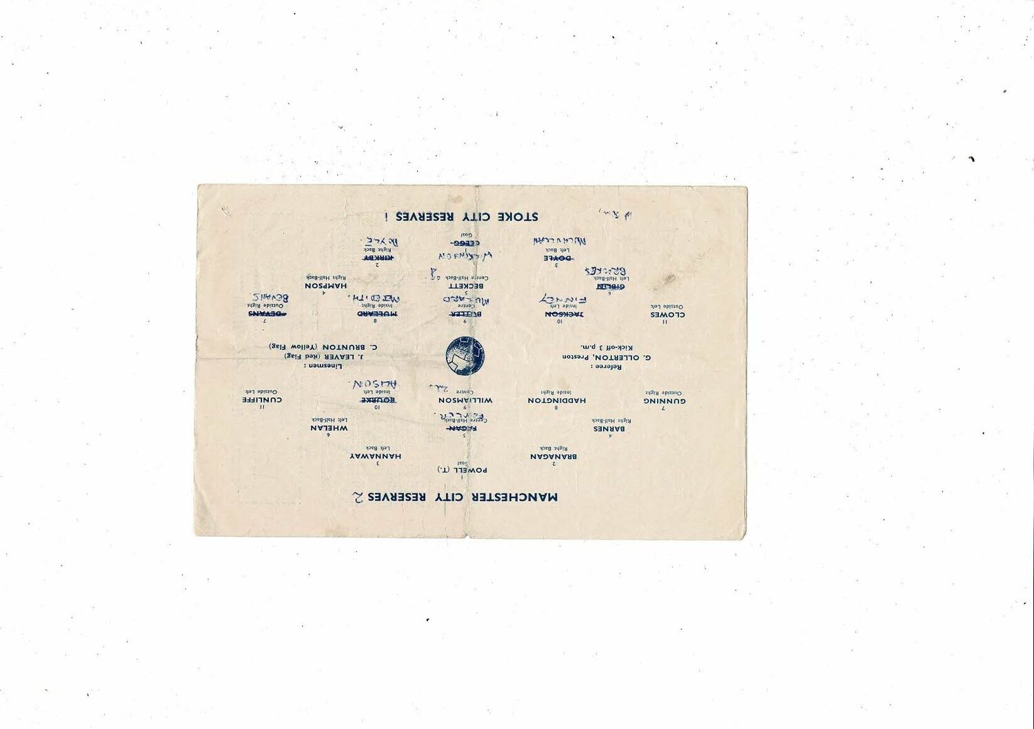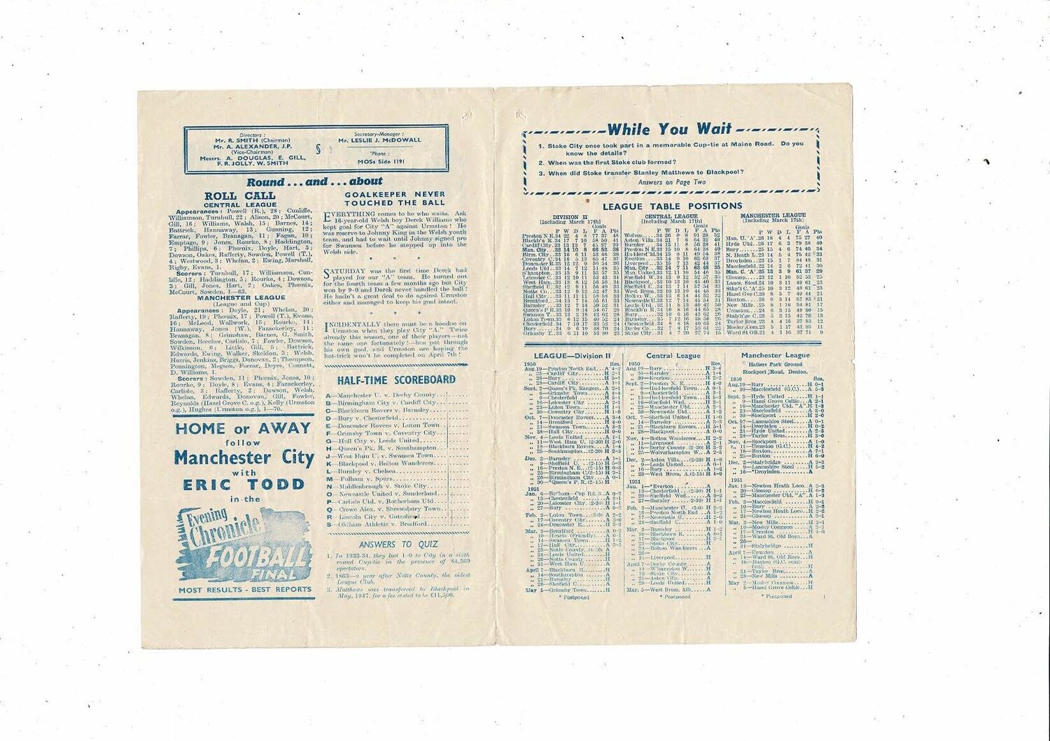 Manchester City v Stoke City Central League Football Programme 1950/51