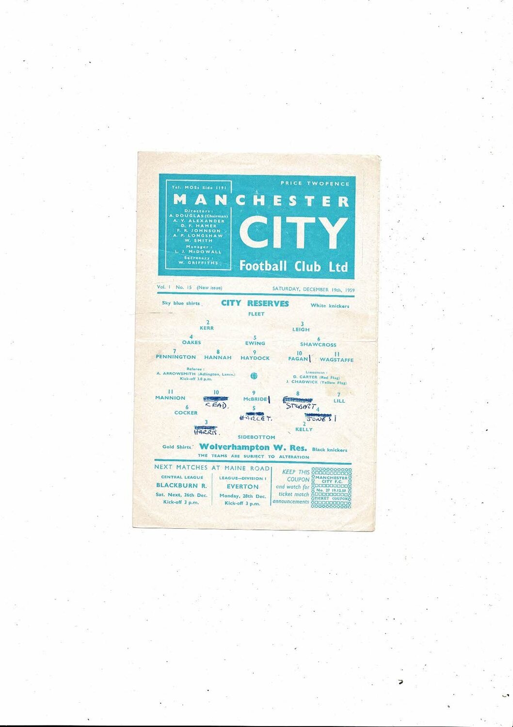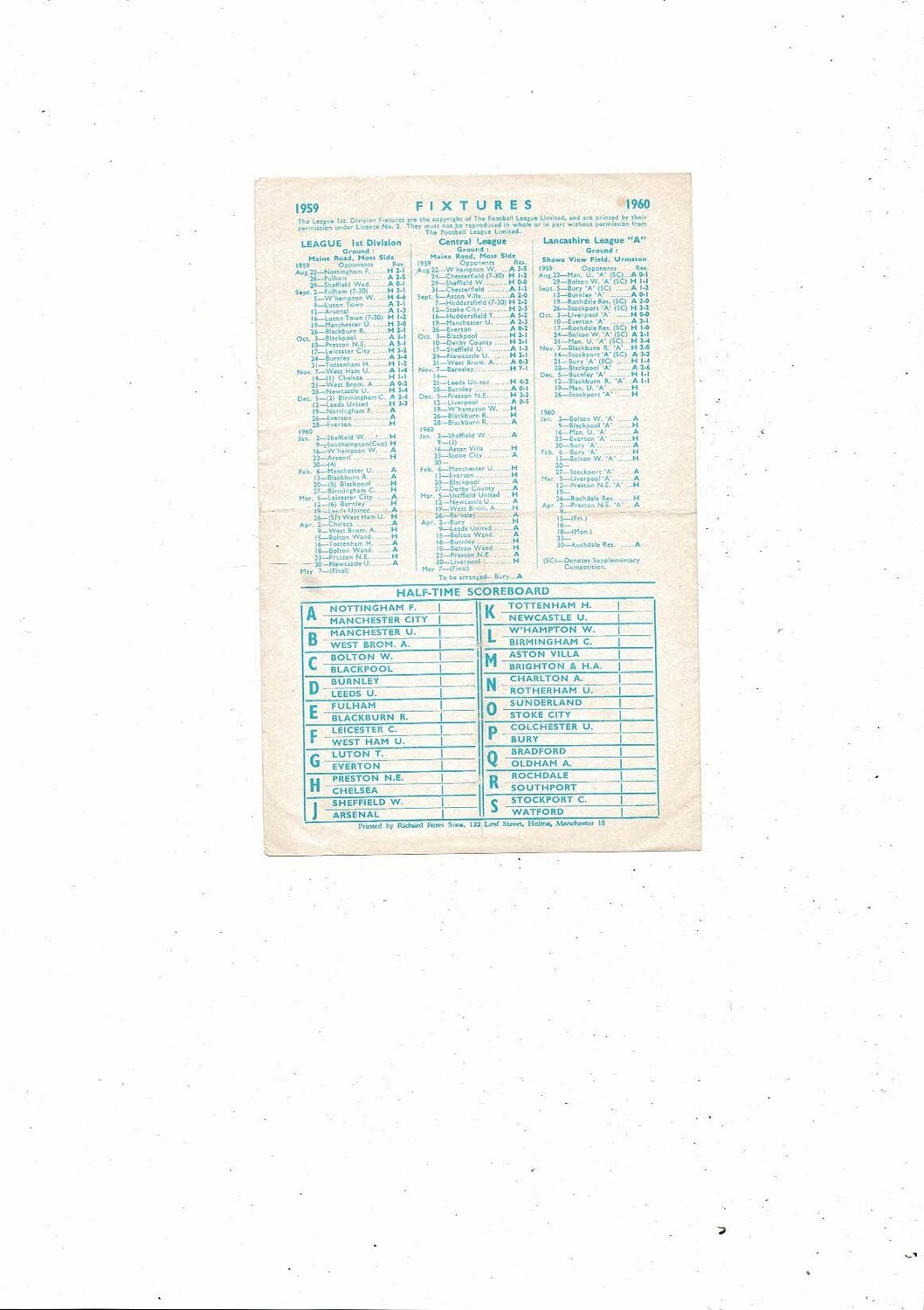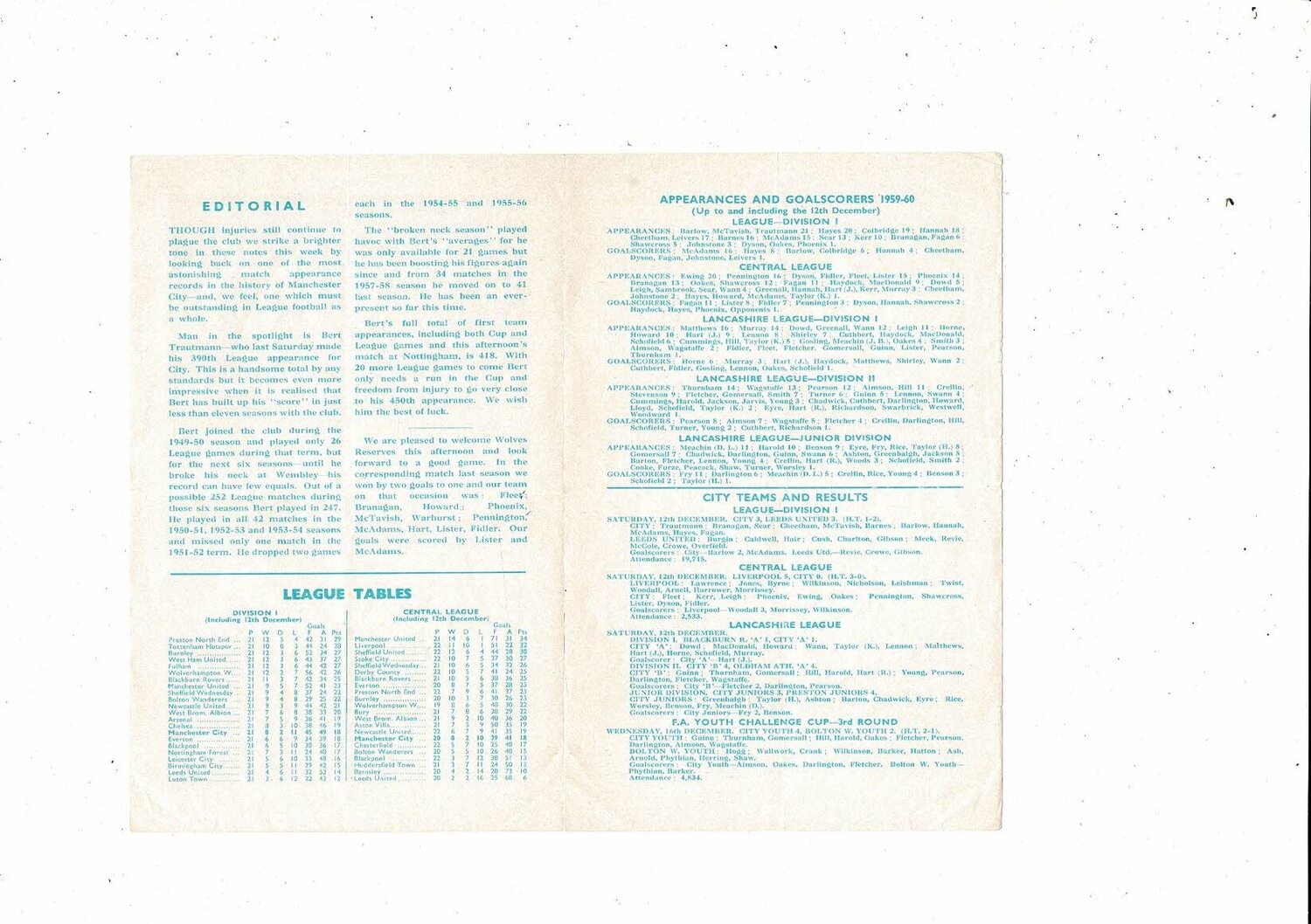 Manchester City v Wolves Central League Football Programme 1959/60
