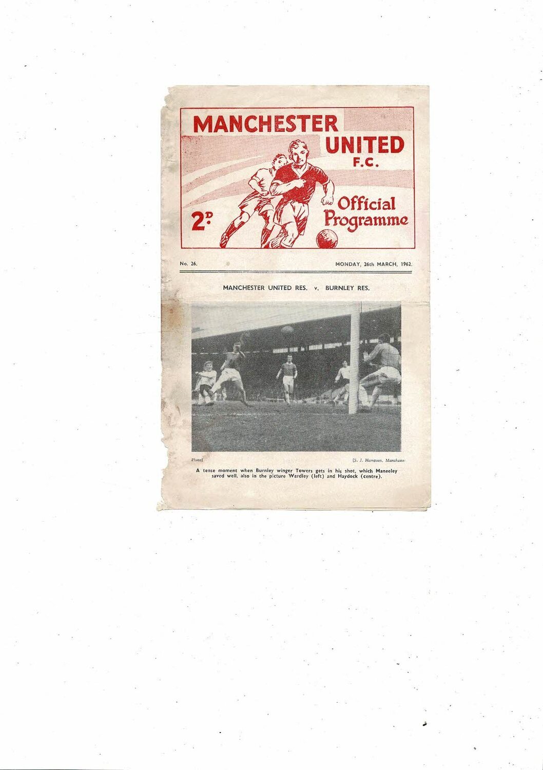 This original 4 page Football Programme is creased also has a fold, stained with team changes, several tears & pieces missing all on spine. Also has the token. Please see scans.