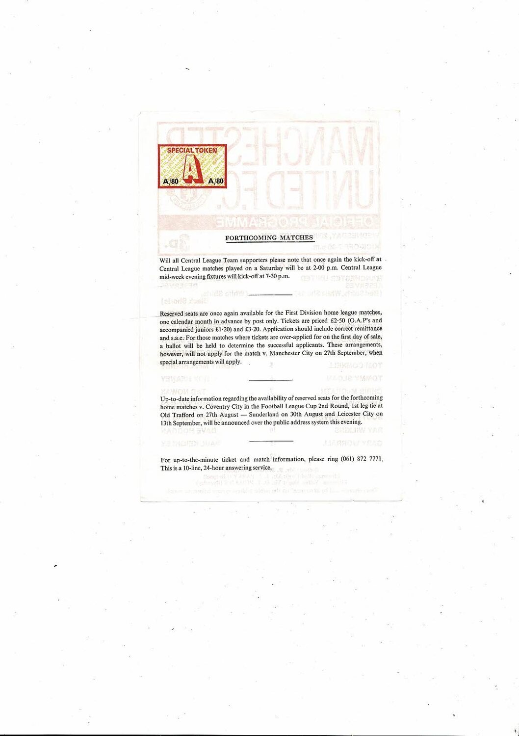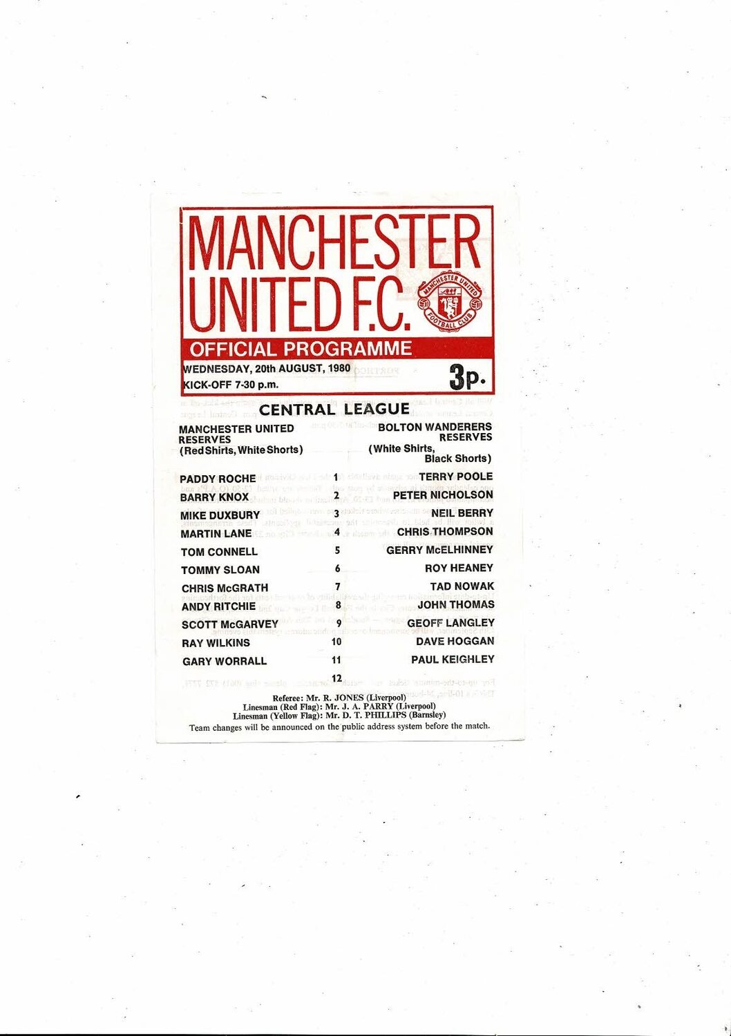 Manchester United v Bolton Wanderers Central League Football Programme 1980/81