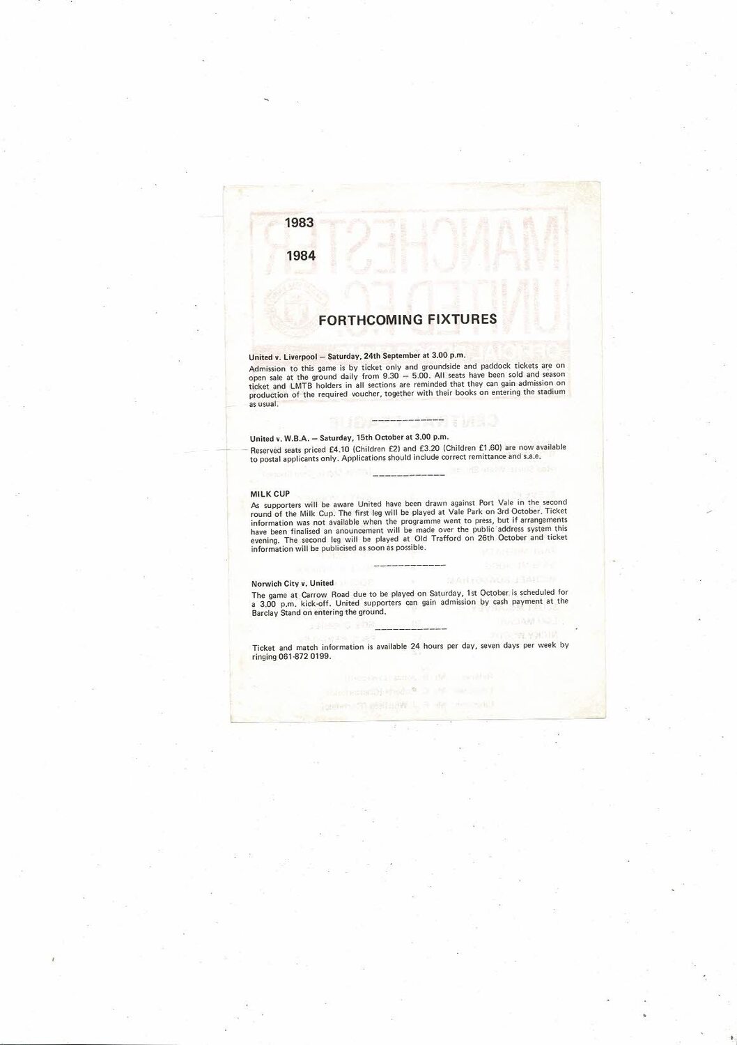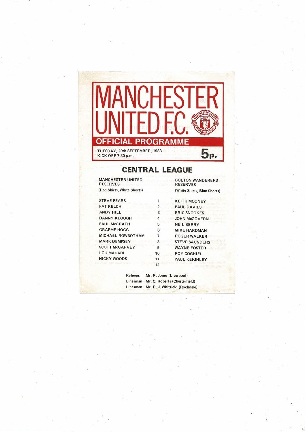 Manchester United v Bolton Wanderers Central League Football Programme 1983/84