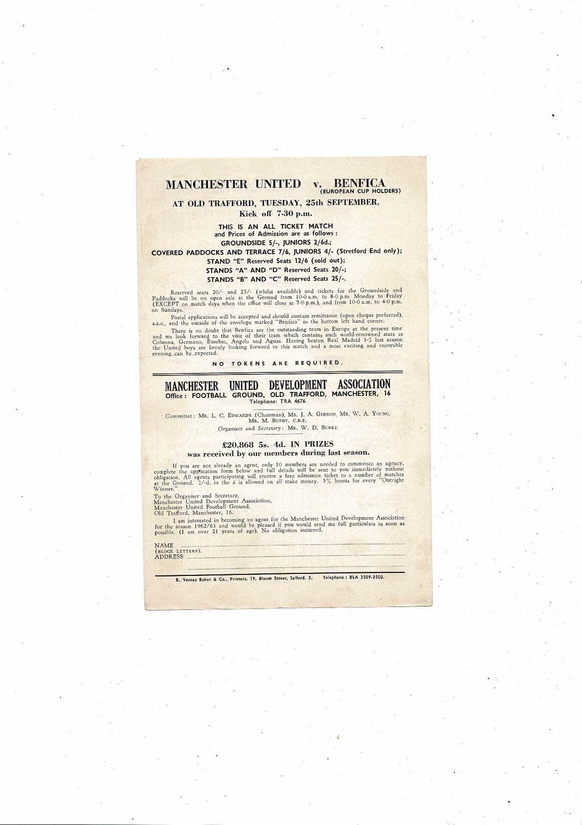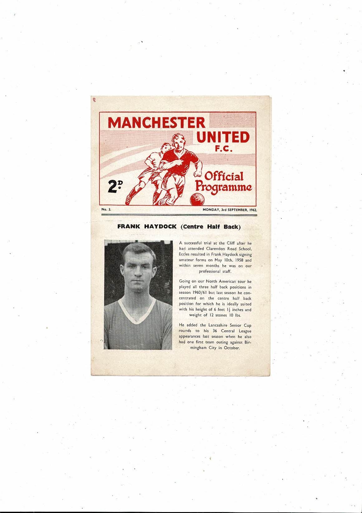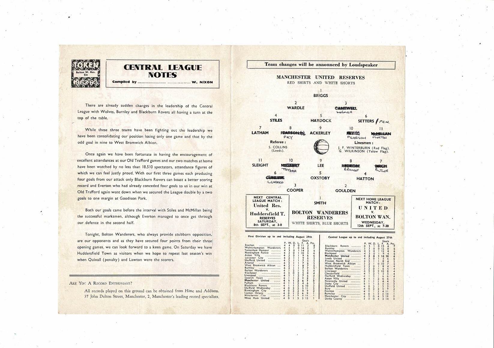 Manchester United v Bolton Wanderes Central League Football Programme 1962/63