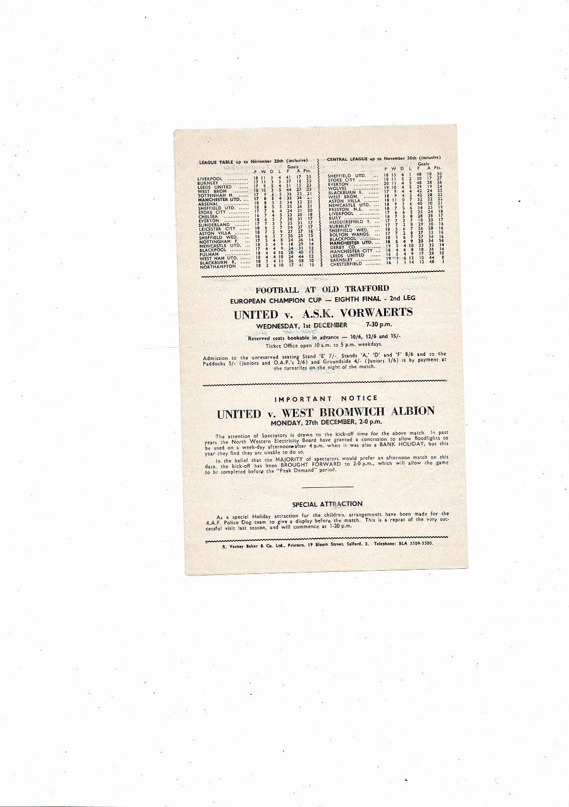 Manchester United v Bury Central League Football Programme 1962/63
