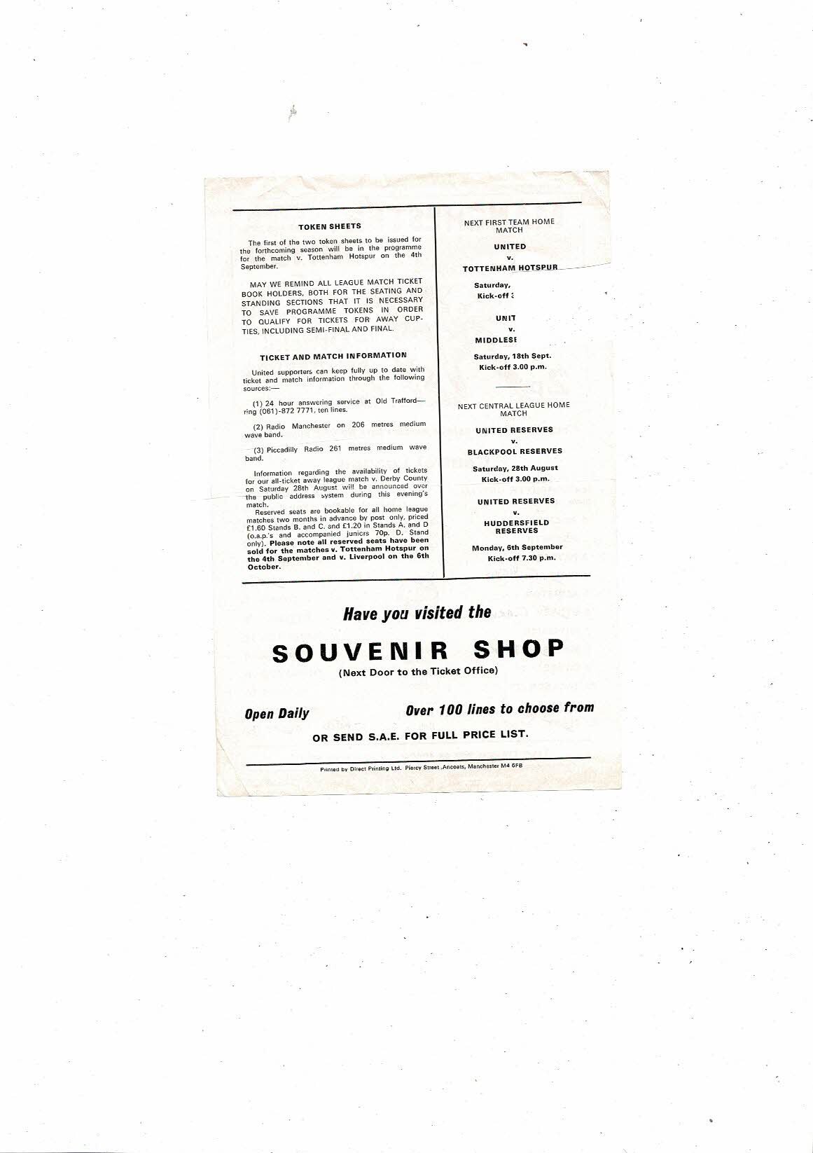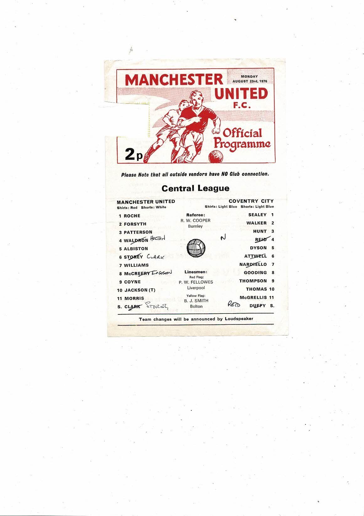 Manchester United v Coventry City Central League Football Programme 1976/77