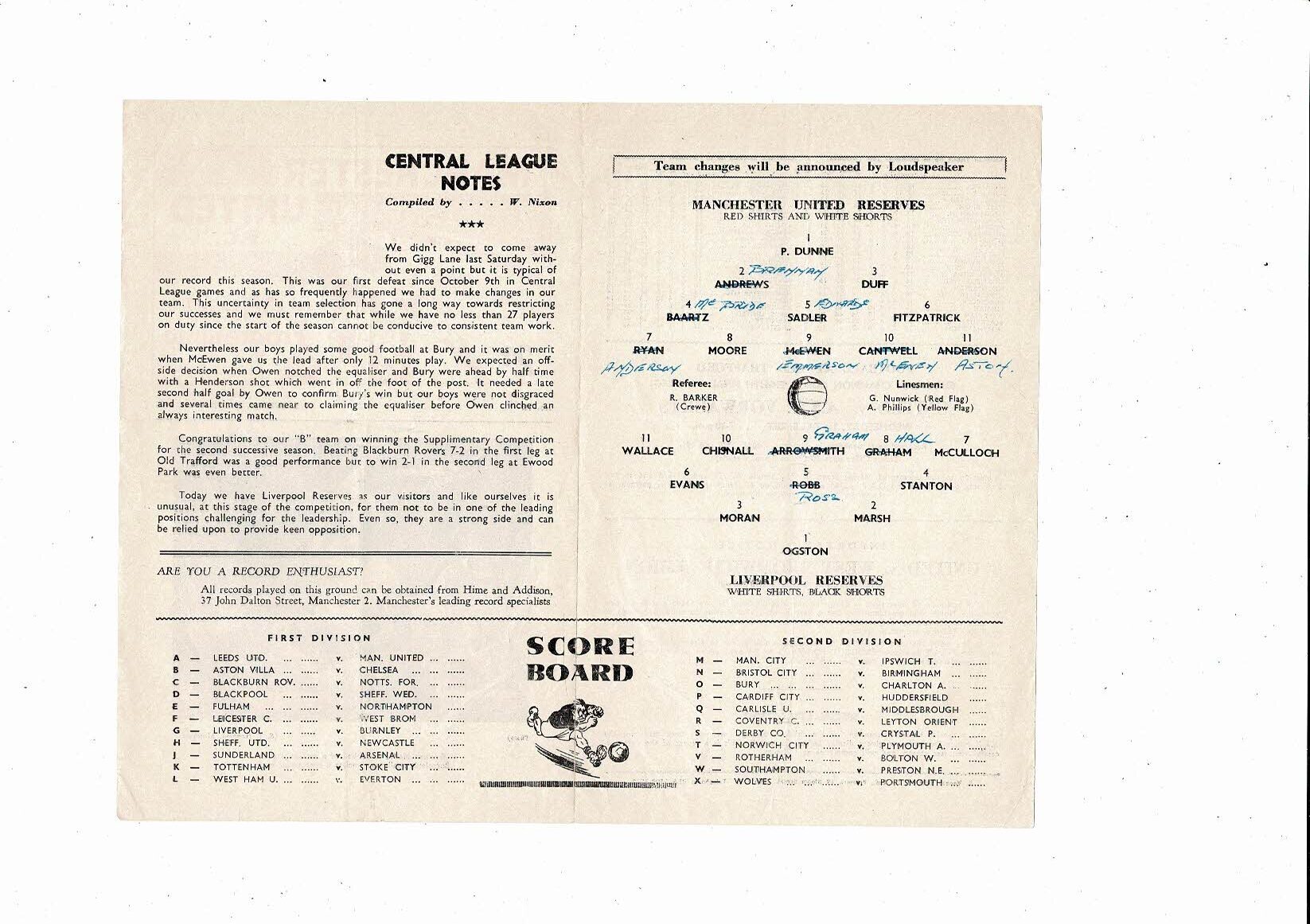 Manchester United v Liverpool Central League Football Programme 1965/66
