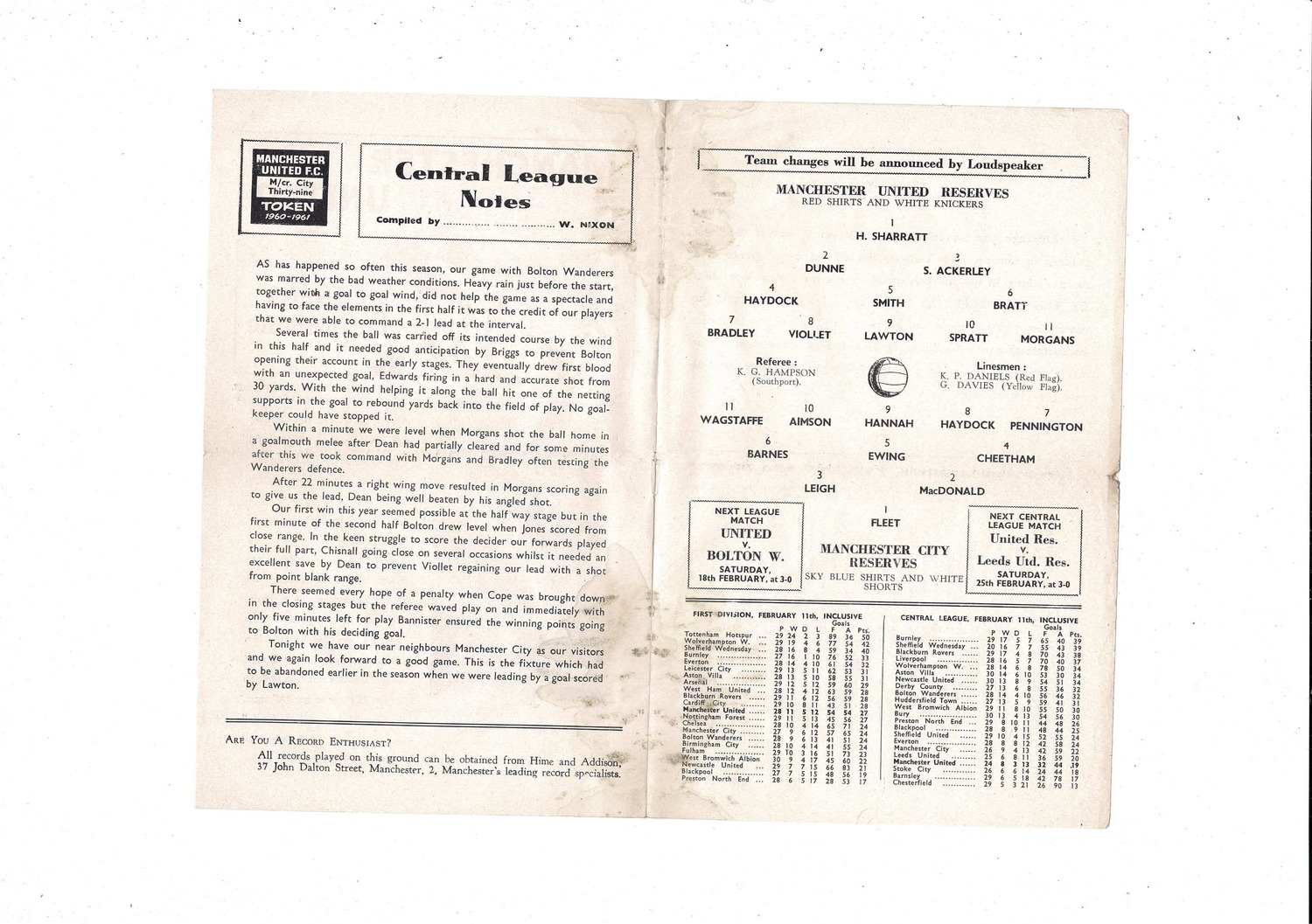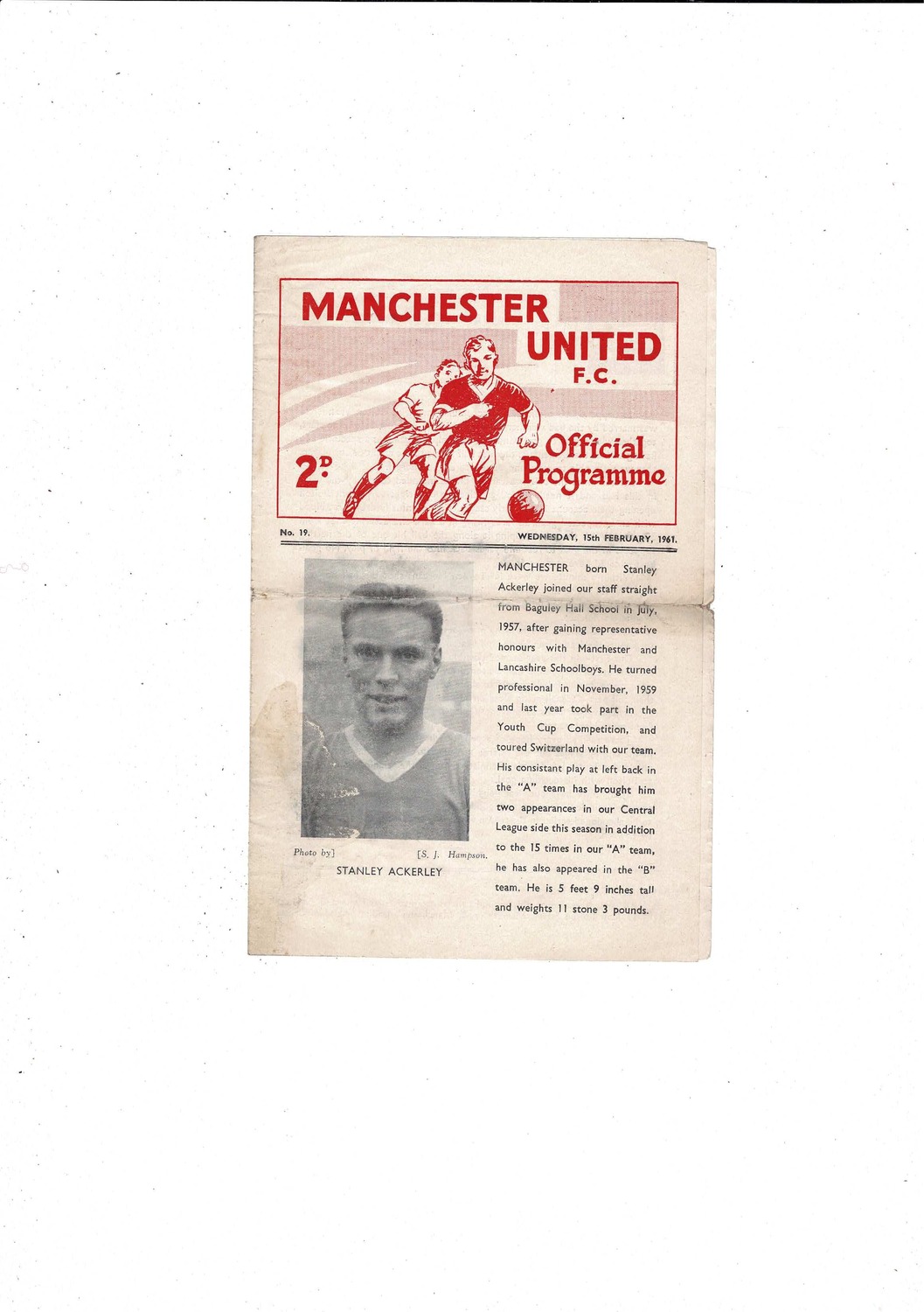 Manchester United v Manchester City Central League Football Programme 1960/61