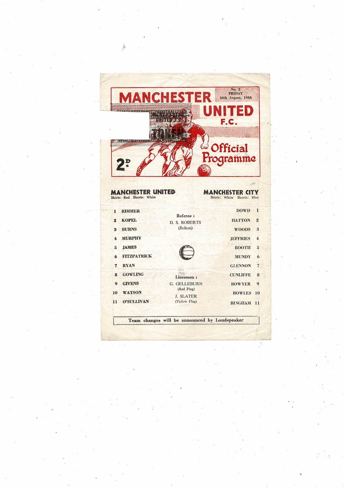 Manchester United v Manchester City Central League Football Programme 1968/69