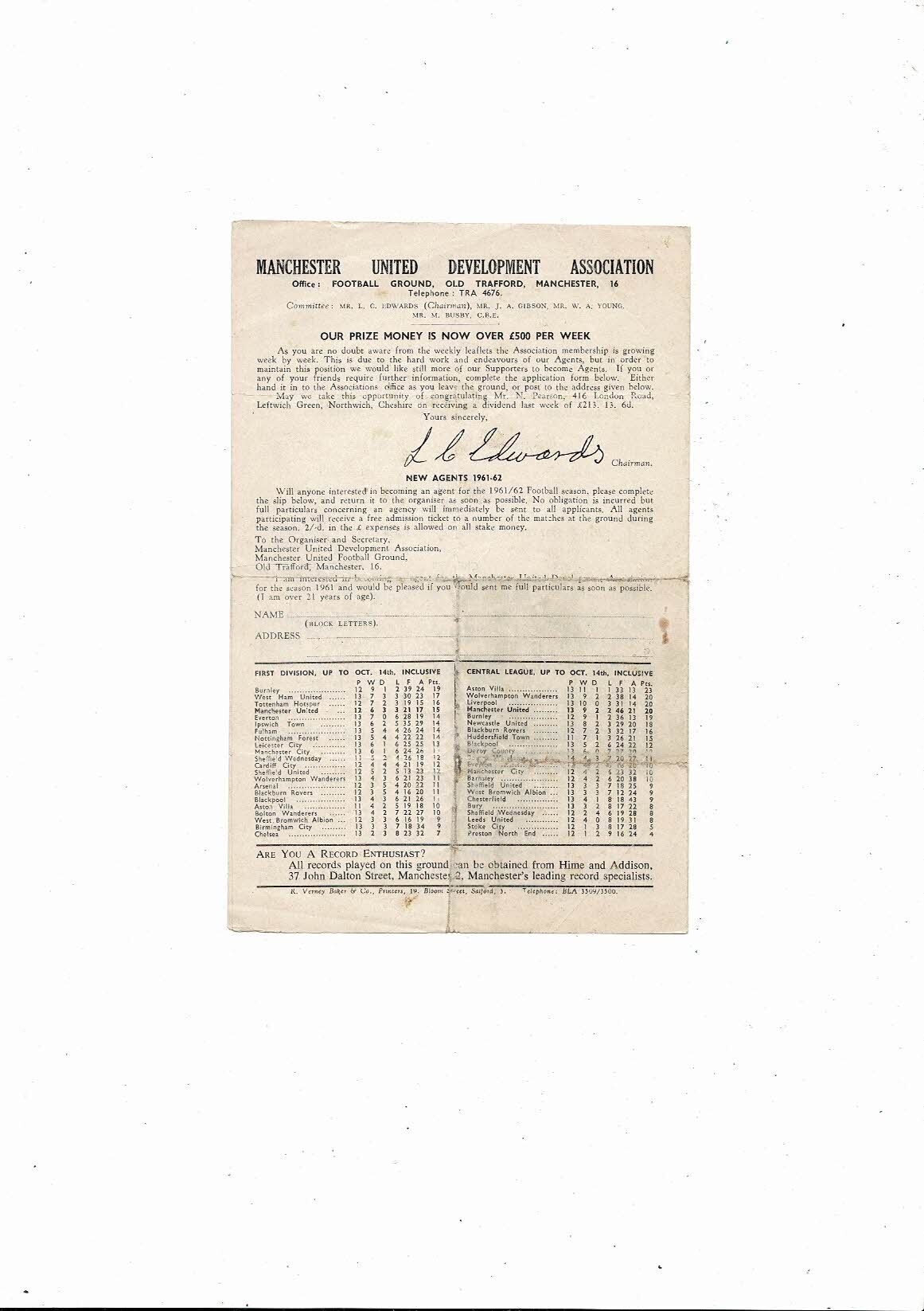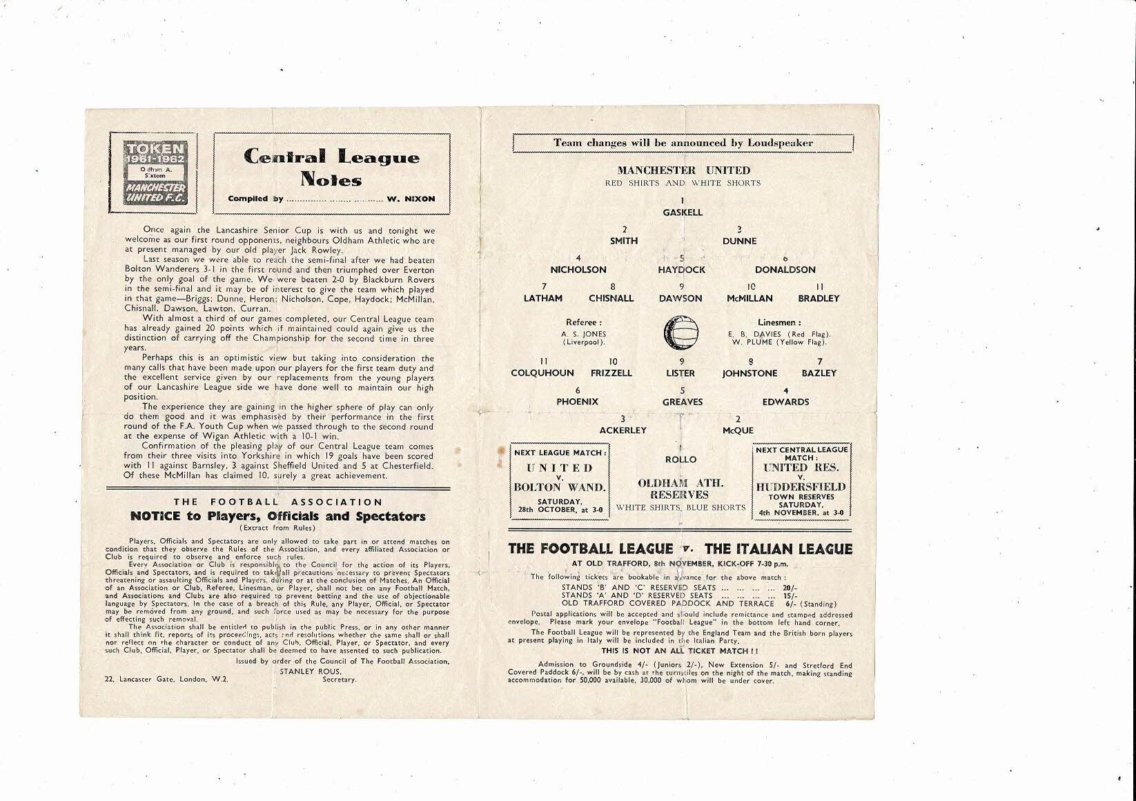 Manchester United v Oldham Athletic Central League Football Programme 1961/62