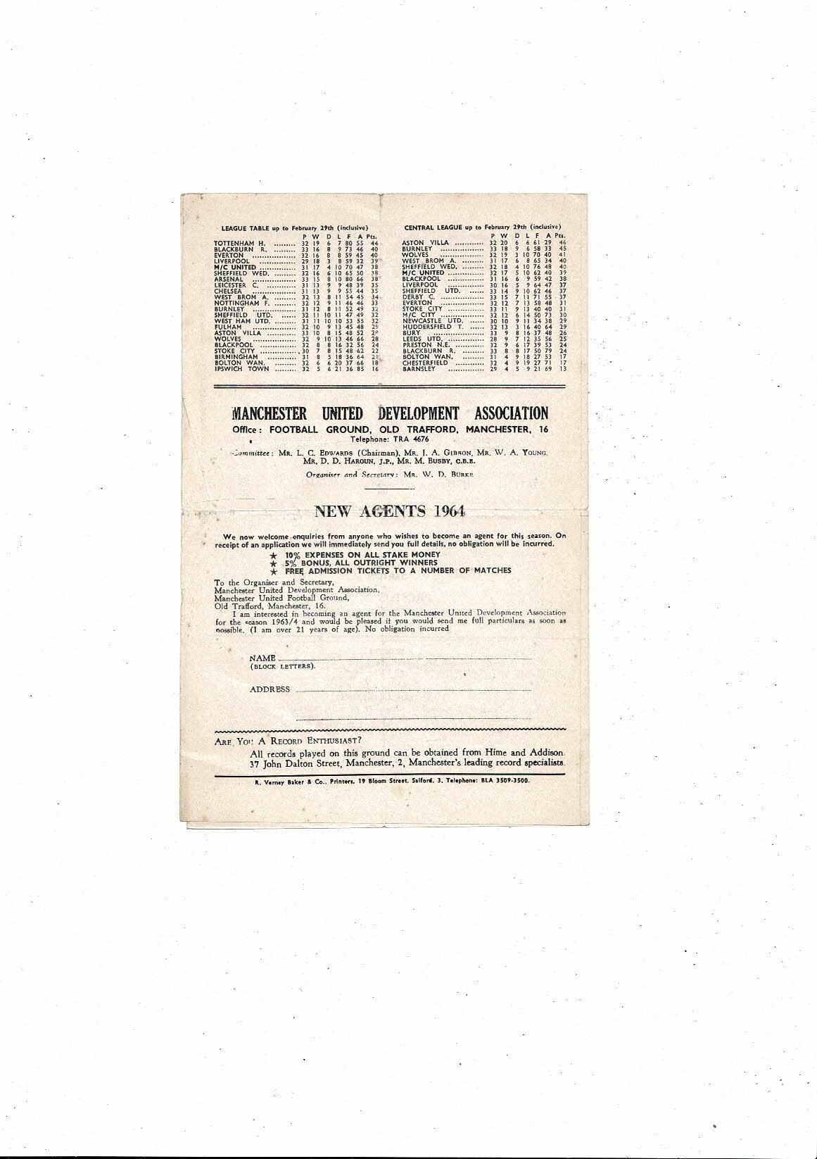 Manchester United v Preston Central League Football Programme 1963/64