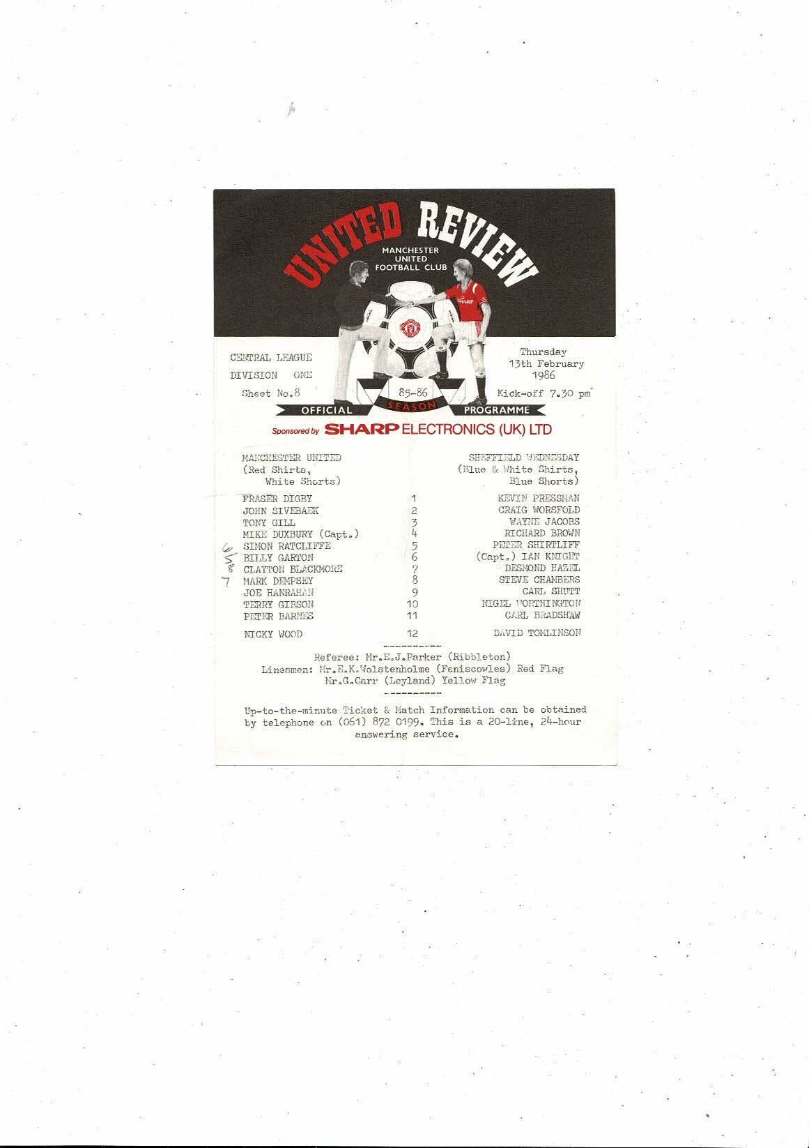 Manchester United v Sheffield Wednesday Central League Programme 1985/86