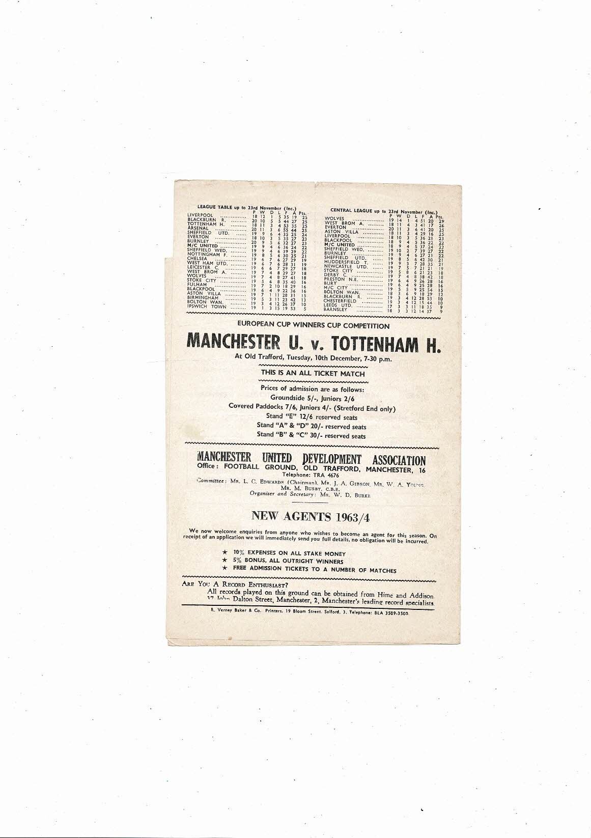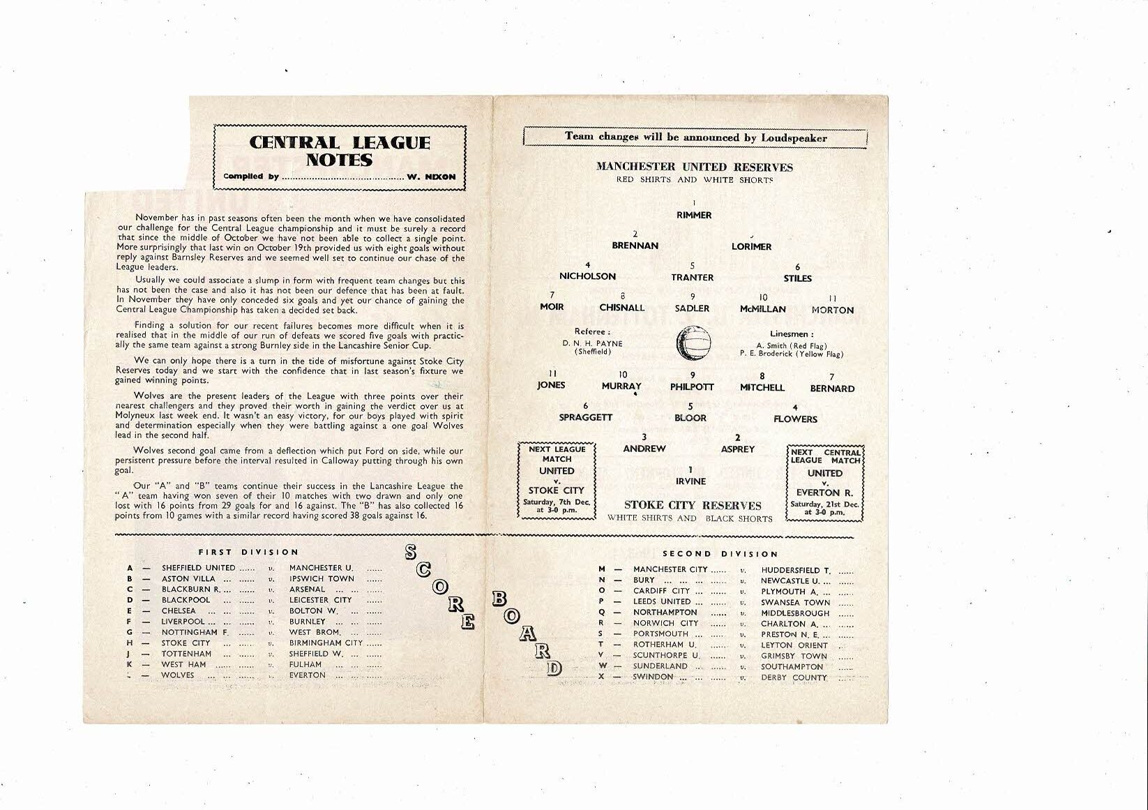 Manchester United v Stoke City Central League Football Programme 1963/64