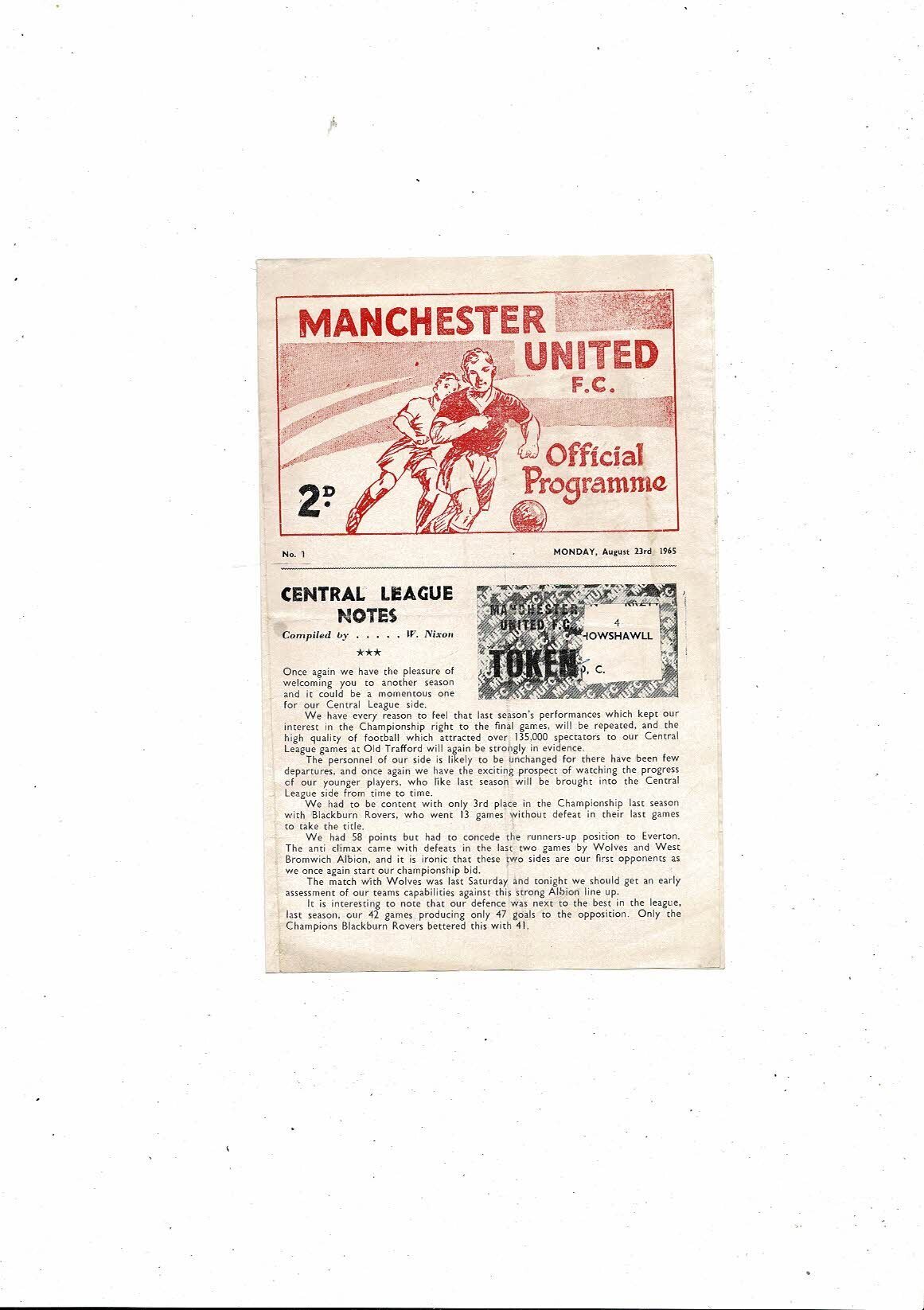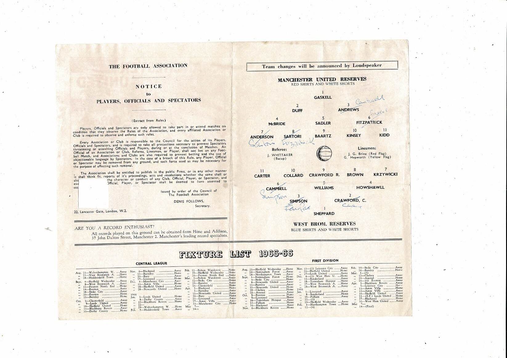 Manchester United v West Bromwich Albion Central League Football Programme 1965/66