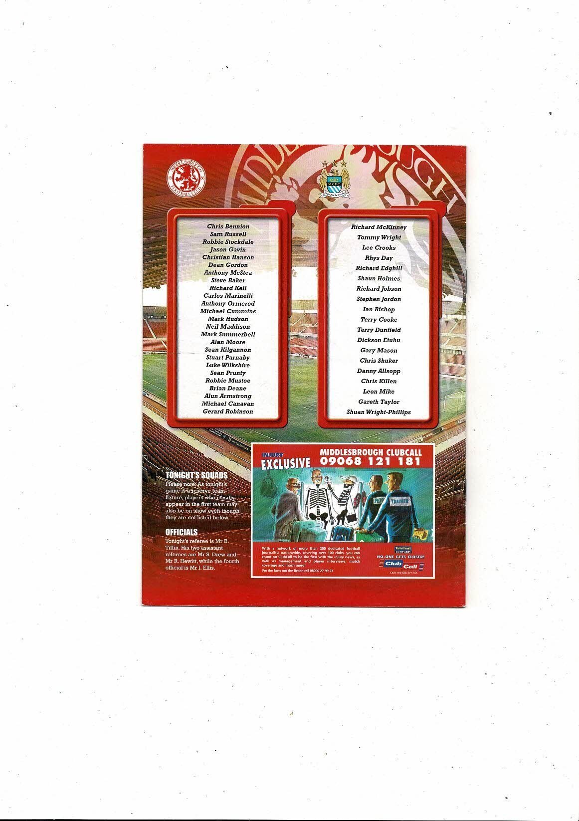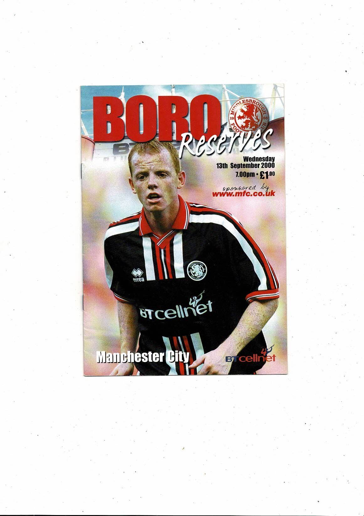 Middlesbrough v Manchester City Reserve League Football Programme 2000/01