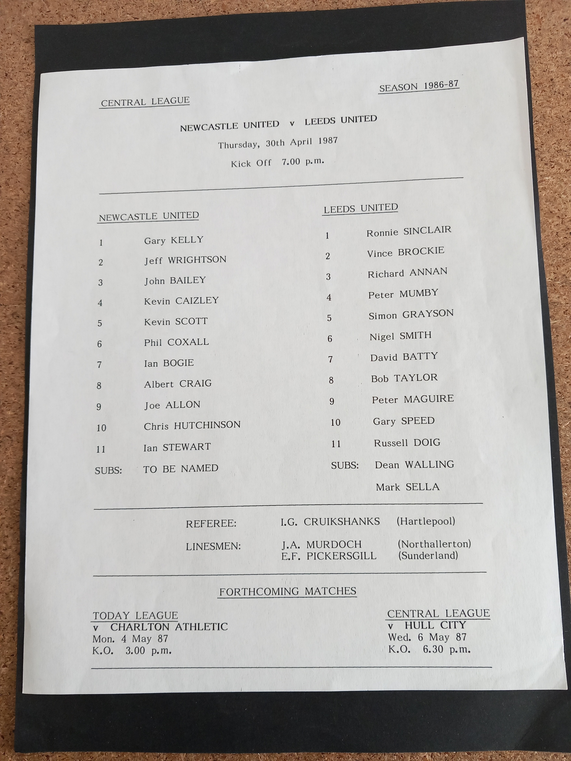 Newcastle United v Leeds United Central League Football Programme 1986/87